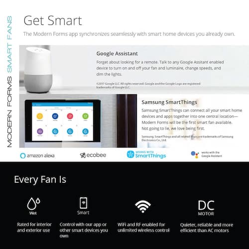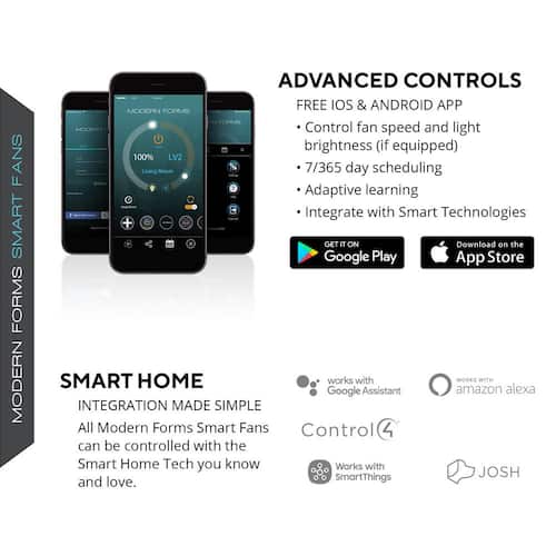 About This Product:A modern meditation on style and technology, Lotus is the ultimate utility player. Its clean, streamlined look works well with almost any decor, inside or outdoors. And with our Modern Forms App, this smart fan responds to your behavior patterns with optimized schedules that can help cut down on energy use. Engineered with a quiet, energy-efficient DC motor and a powerful LED luminaire, this fan is peak enlightenment.