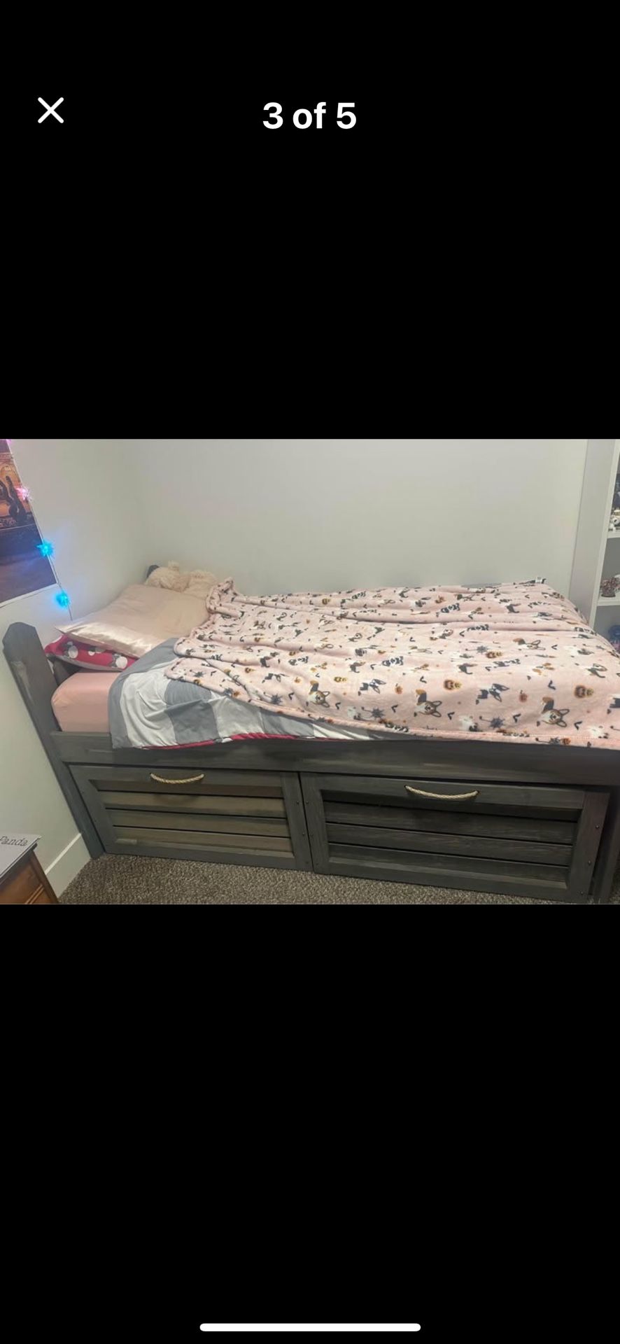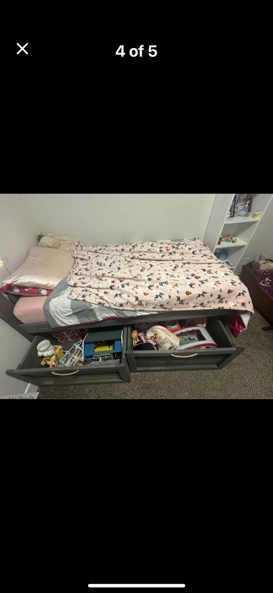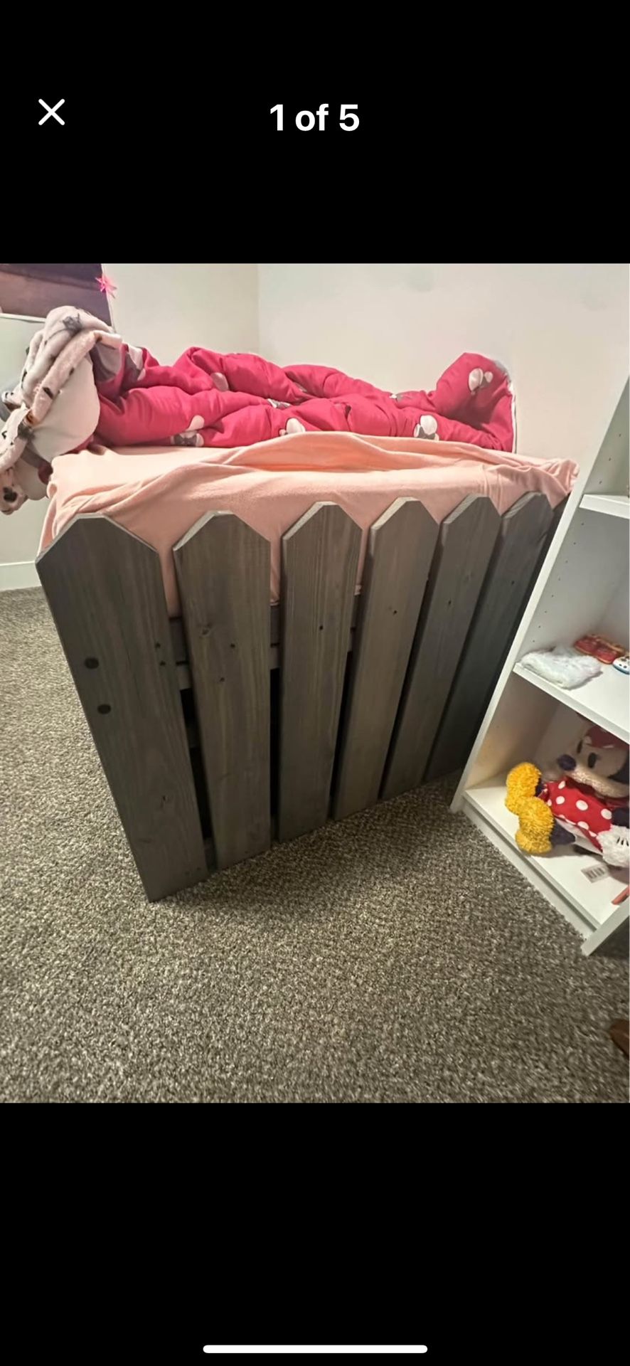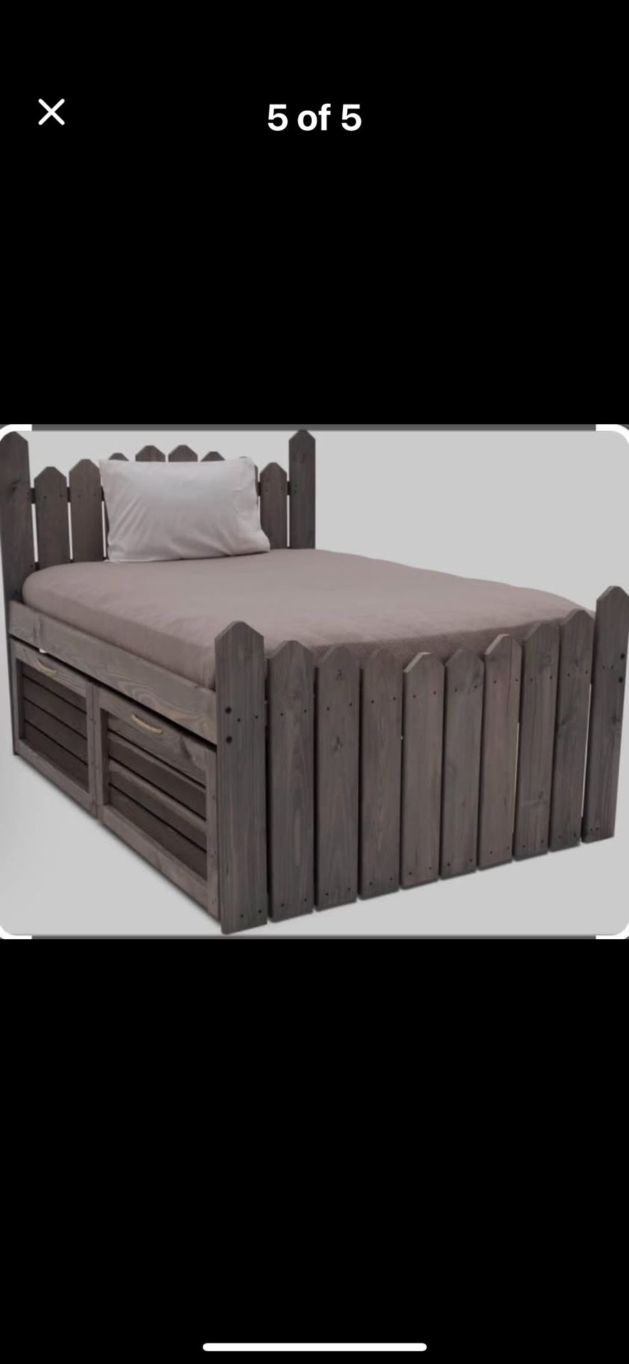 Picket fence twin bed. This bed is in great condition. My child just wants to convert to a queen. I don´t have better photos because this is currently in storage. Will accept offers