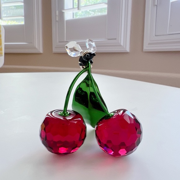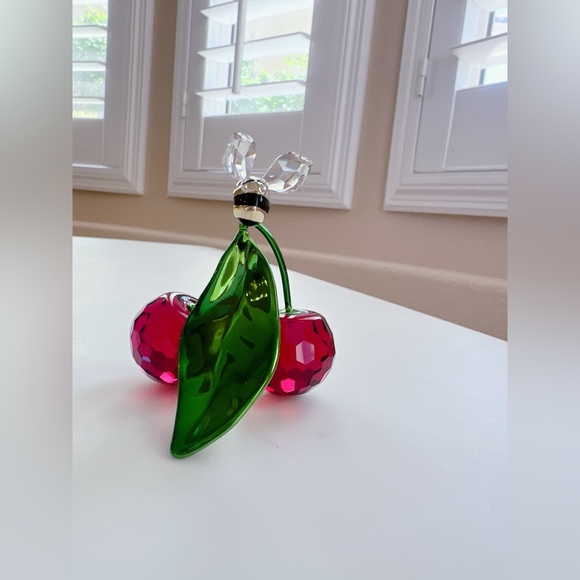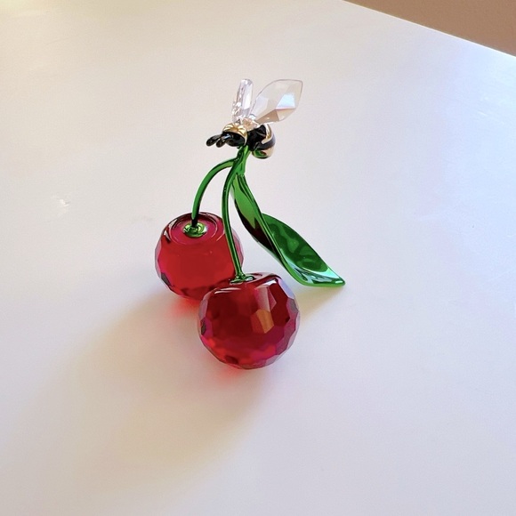 New with a Box.A garden’s hive of activity has been brought to life in this creative display, which features a busy bee landing on a pair of cherries. The playful scene is produced in vivid color, with 233 facets that expertly capture every detail. Lacquered metal accents are seamlessly integrated, forming the luminous green leaf and cherry stems. An extraordinary tribute to nature’s wonder, representing new beginnings and good luck. Decoration object. Not a toy. Not suitable for children under 15.Article no.: 5667550Size: 1 3/4 x 1 3/4 x 2 1/8 inchDesigner:Alice dal VermeMaterial:Crystals, Lacquered metalColor:MulticoloredCollection:IdylliaSKU:A604