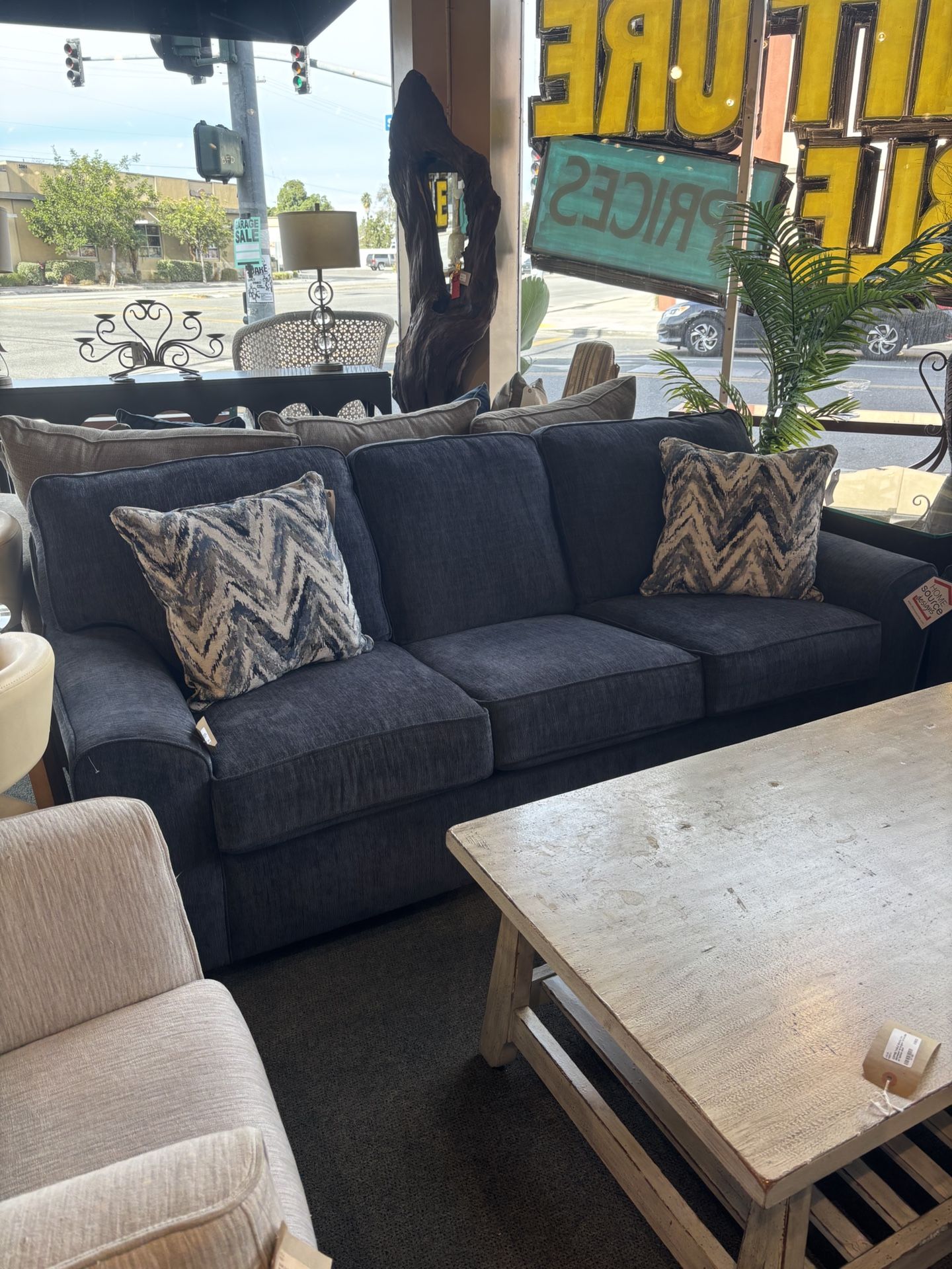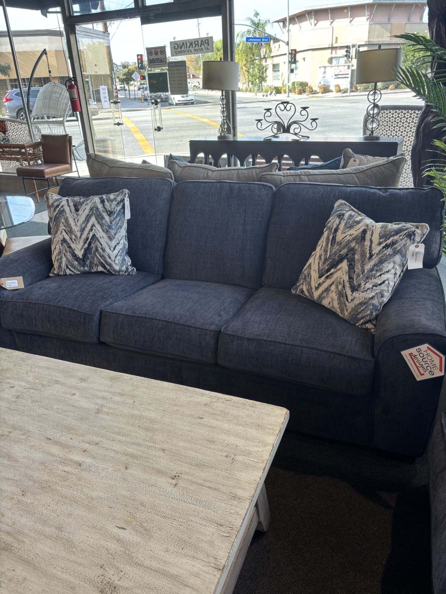 Adrian Denim w/ 2 grey & white chevron pillowsSKU NSCR9X