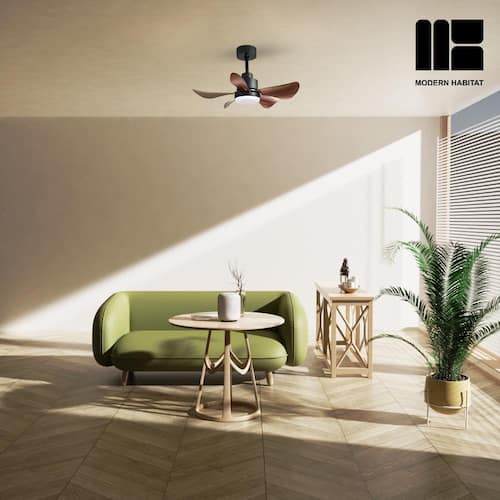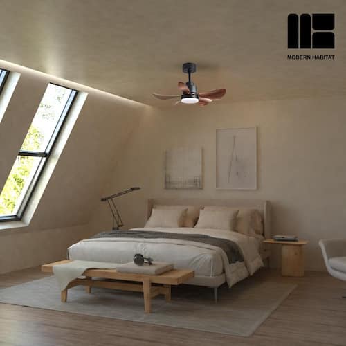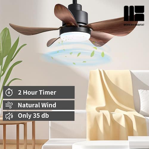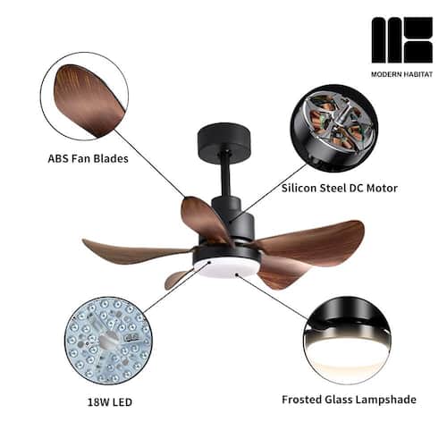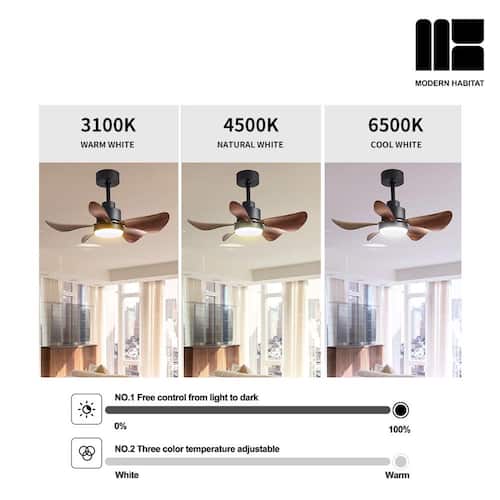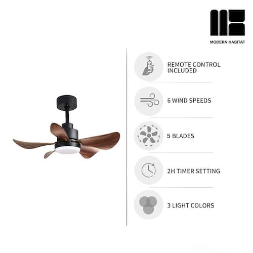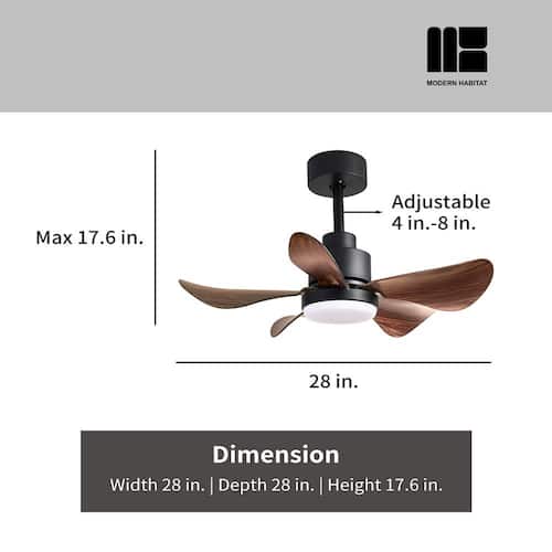 About This Product:About This ProductRefresh your living space, whether indoor or outdoor, this summer, with the LuminousBreeze Collection 28 in. Natural Black ceiling fan with light from Modern Habitat. The Five Brown ABS Blade feature a modern farmhouse style with a quiet DC motor that provides Six adjustable speeds and Three timer setting with remote control. It comes with Two downrod sizes (4 and 8 in.)to fit spaces from 80-100 square feet, from living rooms and kitchens to home office bedrooms, accommodating various ceiling heights from open-mount to high ceiling. The mounting options also allow installation on angled ceilings. The fan features easy-install Quiet Motor technology with three airflow modes, guaranteeing minimal noise.