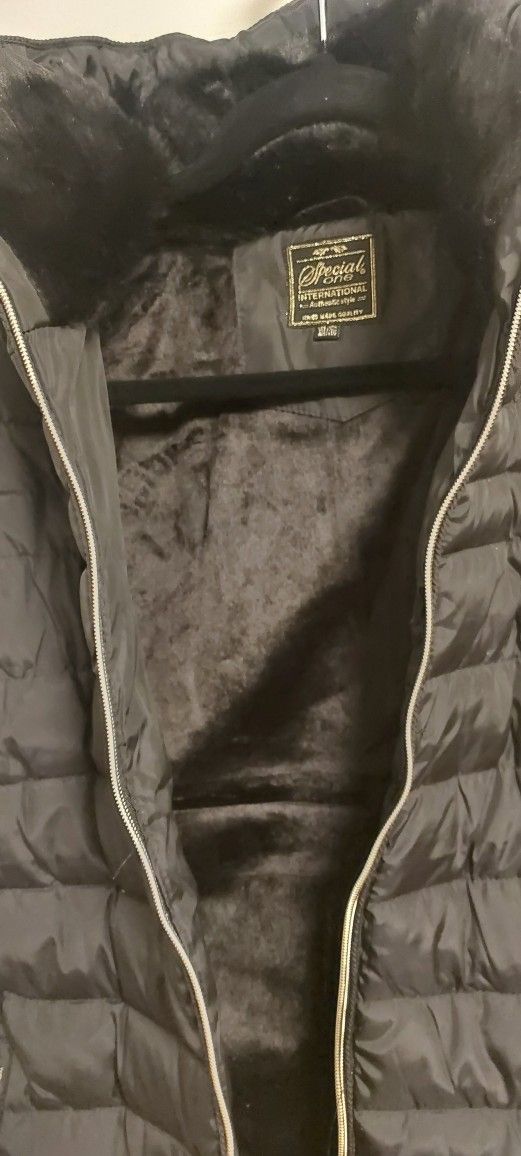 Faux fur lined, very warm and beautiful. Size L