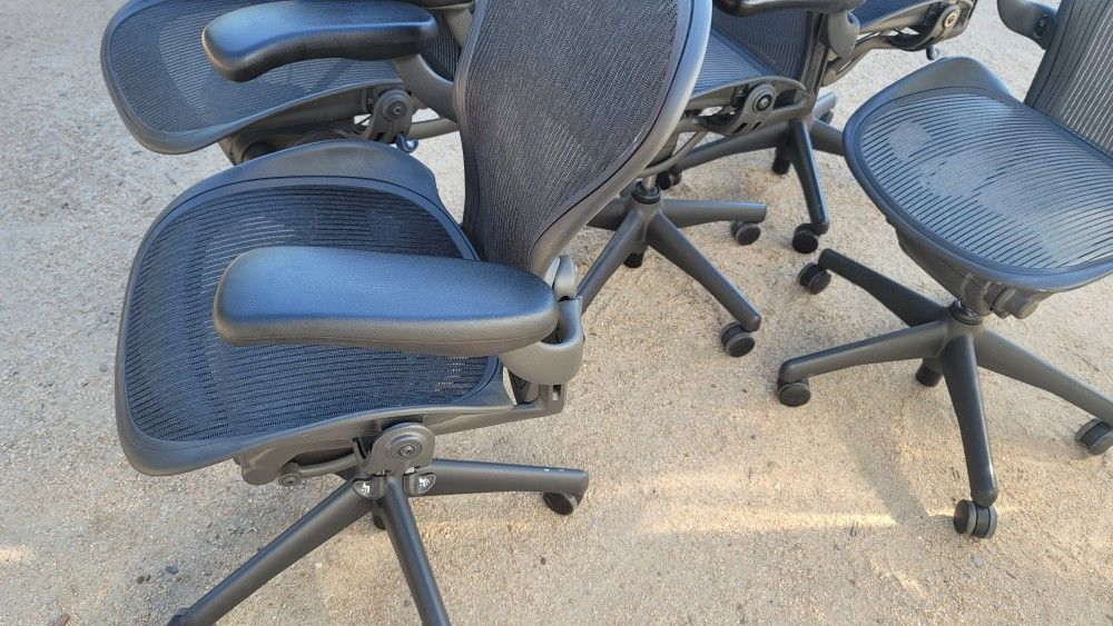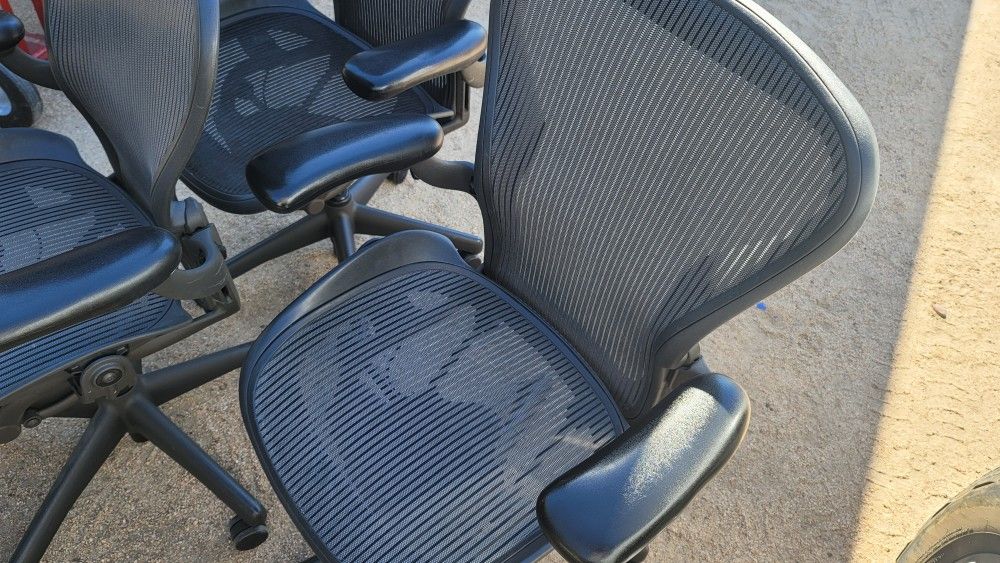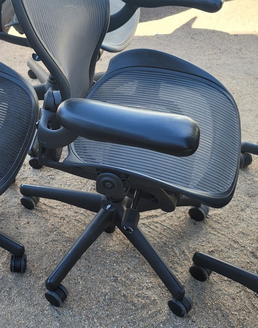 Herman Miller Aeron Office Desk ChairsFully LoadedSize BOnly a few for this priceGreat shape and everything works perfectly with a one-year warrantyFree delivery within reasonNo blemishes in the mesh or issuesAll mechanisms work perfectly