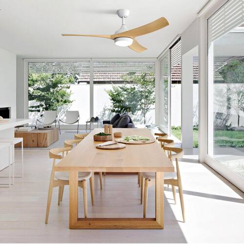 About This Product:Upgrade your comfort with the 52 in. Energy-Smart Ceiling Fan - where innovation meets tranquility. Its advanced DC motor consumes 65% less energy than conventional fans while operating at library-quiet levels, making it ideal for bedrooms and workspaces. Control every breeze effortlessly with the included remote, offering 6 customizable speeds, programmable timers, and dual-direction blades for year-round temperature management. Durable ABS blades generate robust airflow for large indoor/outdoor areas while resisting moisture and warping. Designed for DIY installation, its pre-assembled components and slope-compatible design get your space cooling faster. Whether enhancing your covered patio or refreshing a living room, this fan blends sleek functionality with utility-bill savings. Transform your space today - breathe easier, save smarter, and enjoy whisper-quiet comfort in every season.