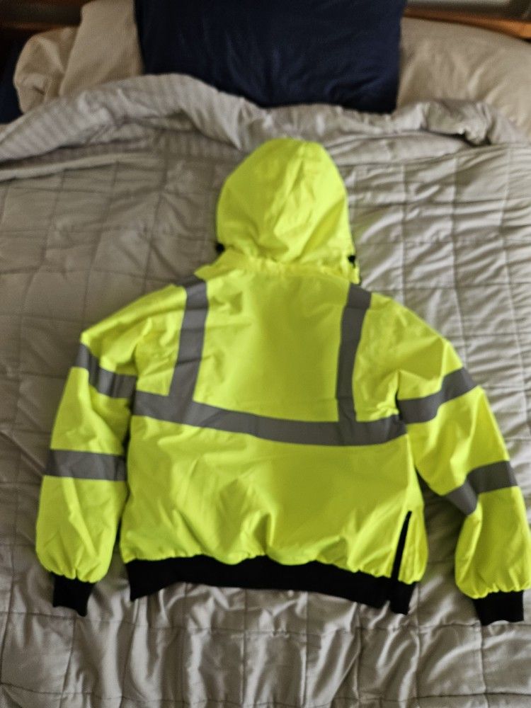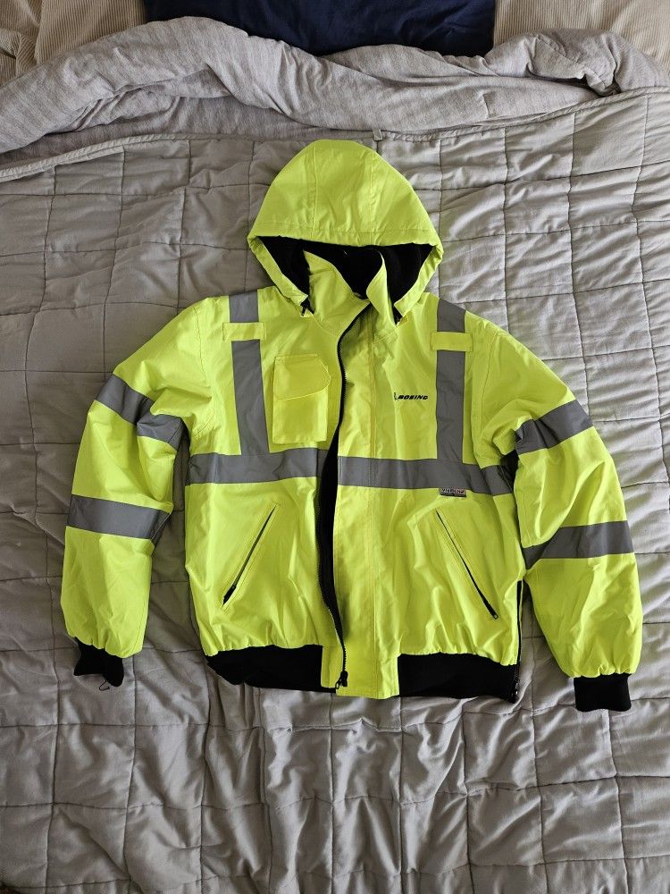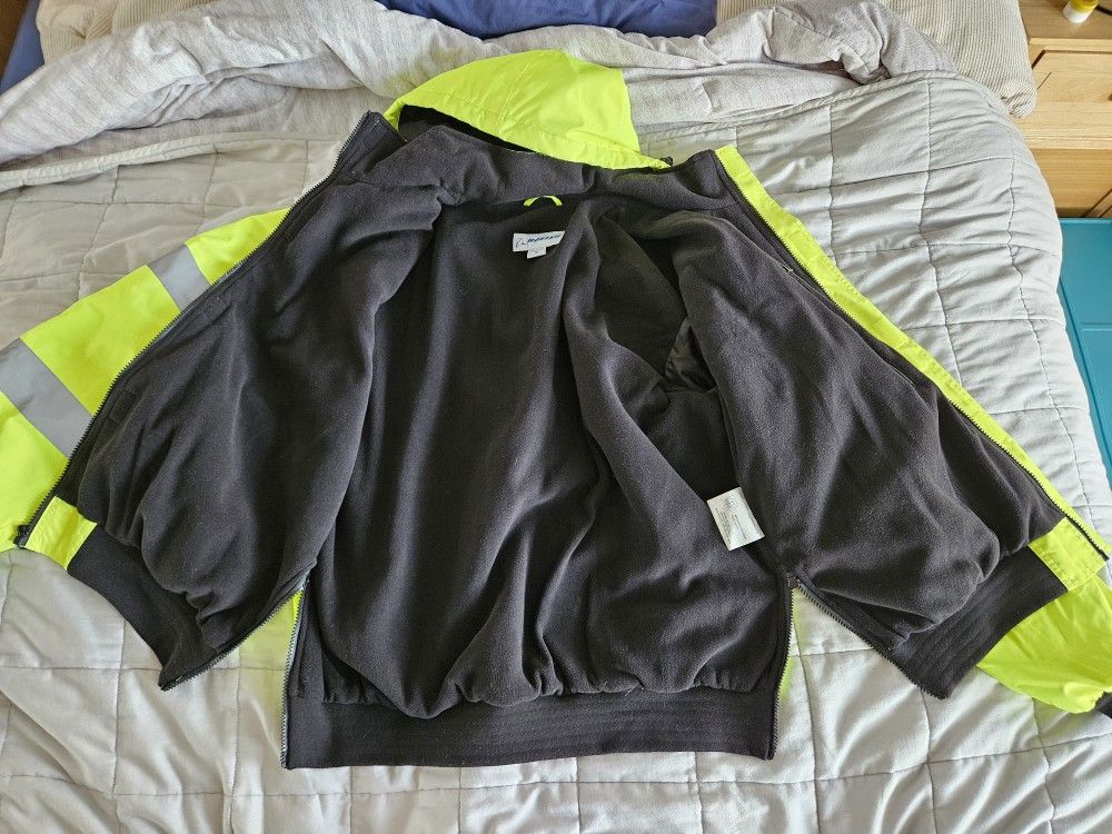 Jacket has fleece liner and side zips
