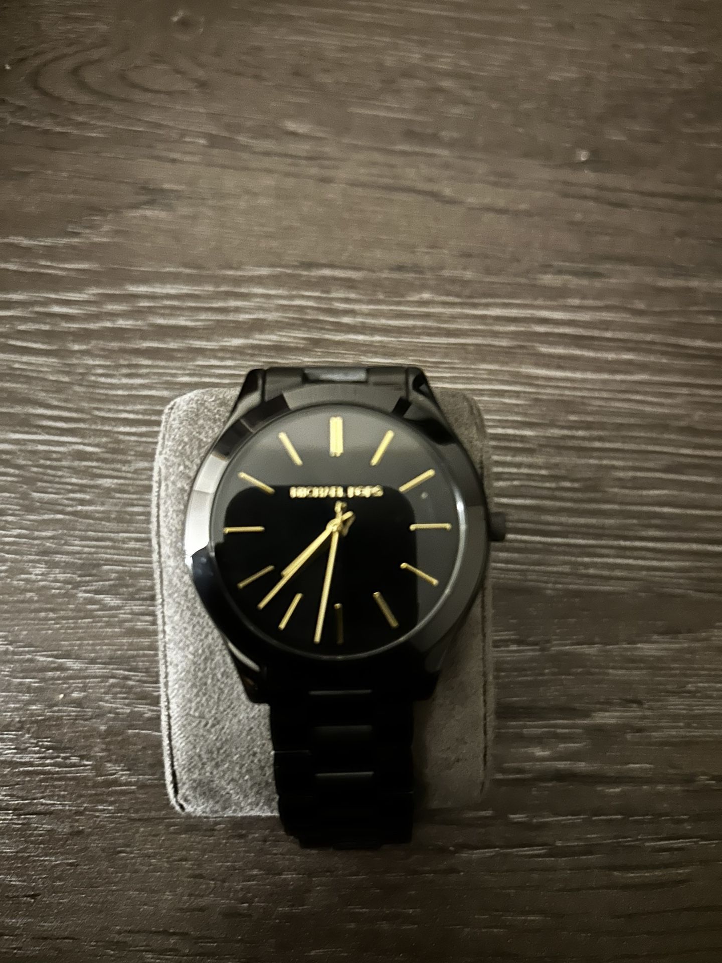 Men’s black and gold Michael Kors watch Lightly used No scratches or marksCleanComes with original links