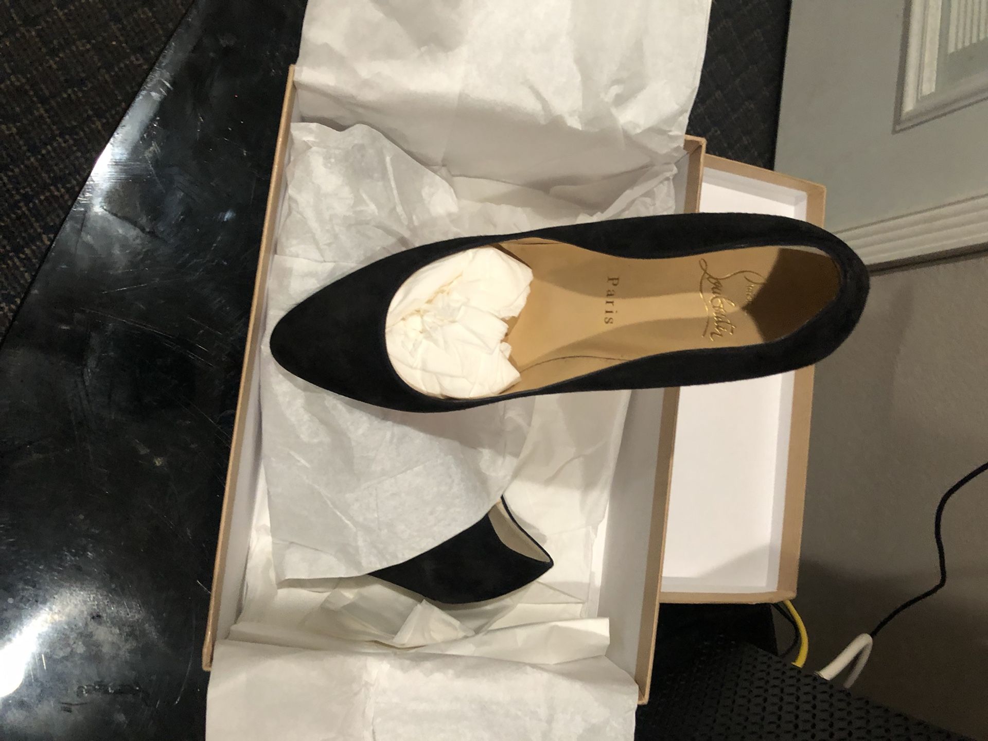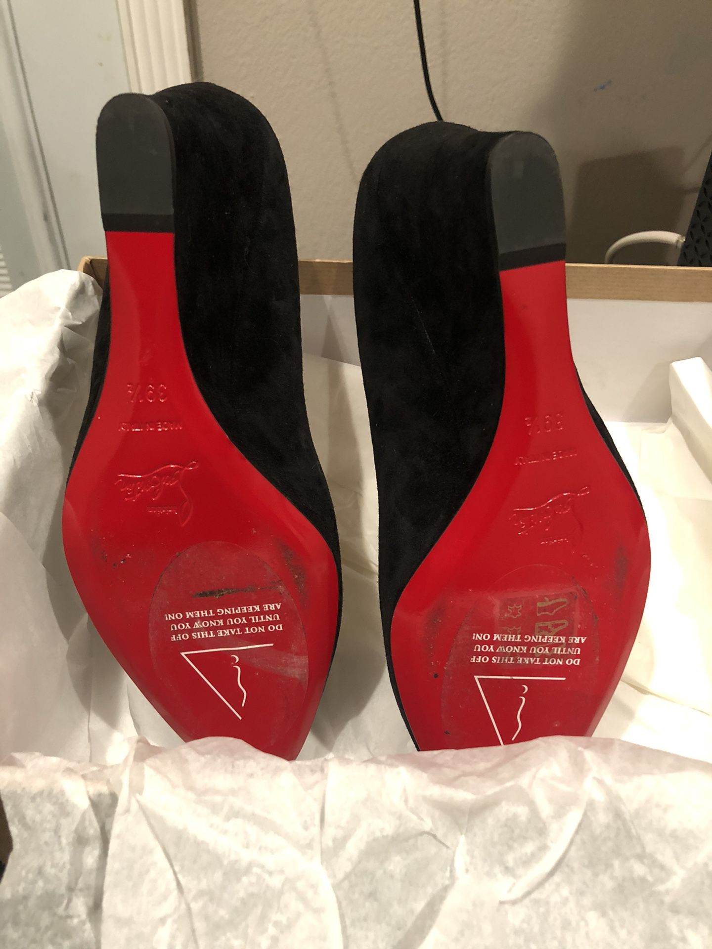 Tanja Black Sude Wedge,Heel,85mmsuede Upperround , pointed Toeleather Lining and Insoleself coved wedge heel signature red leather sole made
