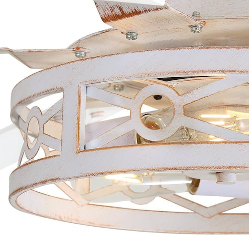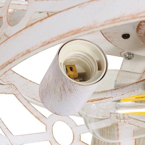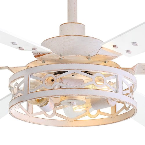 About This Product:65 in. Large Ceiling Fan: The caged ceiling fan comes with 5 in. / 10 in. / 15 in. adjustable down rods and meets up to 15° tilt mounting. Cater to medium to large rooms up to 400 sq. ft. in size, such as living rooms, bedrooms, dining room, covered patios and porches. This ceiling fan with light features a sleek matte white fan body and 6-finished dark walnut and white dual-finish blades, easily customize the farmhouse ceiling fan with lights to fit your decor. Bulb Requirements: The industrial rustic fan comes with 3-E26 bulb sockets (bulbs not included) to enhance the lighting of your rustic ceiling fan with the addition of your choice of bulbs to match the desired ambiance and meet your diverse needs. The product adopts energy-saving silent motor and 6-speed wind speed regulation. With reversible function, not only cools you in the summer, but also circulates warm air downward in the winter for a cozy. The timing function can be automatically turned off on 1/4/8 hours. This industrial ceiling fan is built to last. We provide 1-year quality warranty, please feel free to buy.