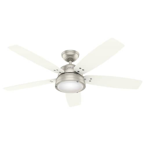 About This Product:Make your patio or porch cooler with this Channelside 52-in. ceiling fan. This damp-rated fan offers a 3-speed WhisperWind reversible motor for maximum airflow. To adjust the fan, it includes a handheld remote. The maple and white finish creates a charming look. For lighting options, it comes with an LED light kit.