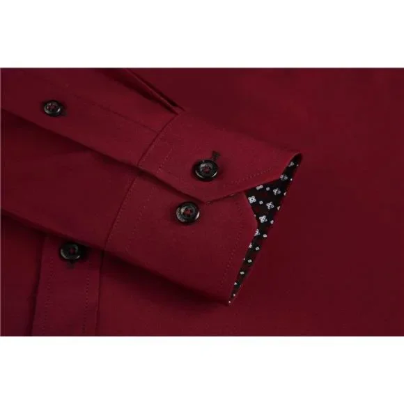 - Material: Our button down shirts for men collection are made from 97%Polyester,3%Spandex,Soft,4-Way Stretch,Iron Free,Light Weight, Suitable for Spring,Summer,Autumn,and down in Winter.- Decent Style: Two tones easy care designer mens button down shirts,left chest pocket,fashion trims and taps on collar band and inner placket,contrast buttons and button holes,outstanding and easy to get compliments. Can´t beat it,start to fill your wardrobe and become a stylish man now!- Size: Based on American regular fit mens casual button-down shirt sizing,fits true to size,can be dressed up or down, tucked or un-tucked. Easy to pair with Jeans,Chinos,Dress Pants and others.- Occassion: This mens button up shirts are great to wear as a go-to work shirt,casual dress shirt,suitable for formal, office,meeting,dating,party and others. Also it´s an ideal gift for father,husband,boy friend,brothers.- Warm Tips: We have white,blue,black,navy,burgundy,pink,purple,green in this long sleeve button down shirts colletion, good quality, nice workmanship, easy to care and no need to iron, Kindly wash this novelty mens dress shirts before wearing. Return freely if don´t like or not fitted.