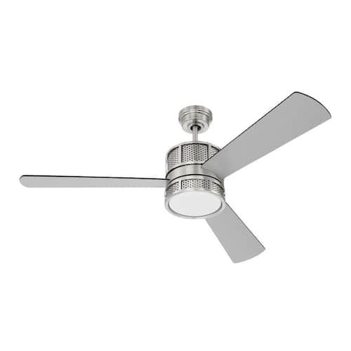 About This Product:The sleek, perforated cylinder-shaped motor finished in brushed polished nickel with custom reversible flat black/brushed nickel blades makes the Morrison 52 in. indoor dual mount ceiling fan a striking addition to any space. Featuring a 3-speed, reversible motor, integrated dimmable LED light, included remote and wall controls and WIFI compatibility, the Morrison ceiling fan is a fan favorite. Ceiling fans can provide both cool and warm air for your home. In the Summer operate the ceiling fan in a counterclockwise direction to send cool air down to the floor, in the Winter operate the ceiling fan in a clockwise direction at a low speed to push warm air down. A ceiling fan is great way to help evenly distribute and circulate the air that´s in the room and cool your home more efficiently.