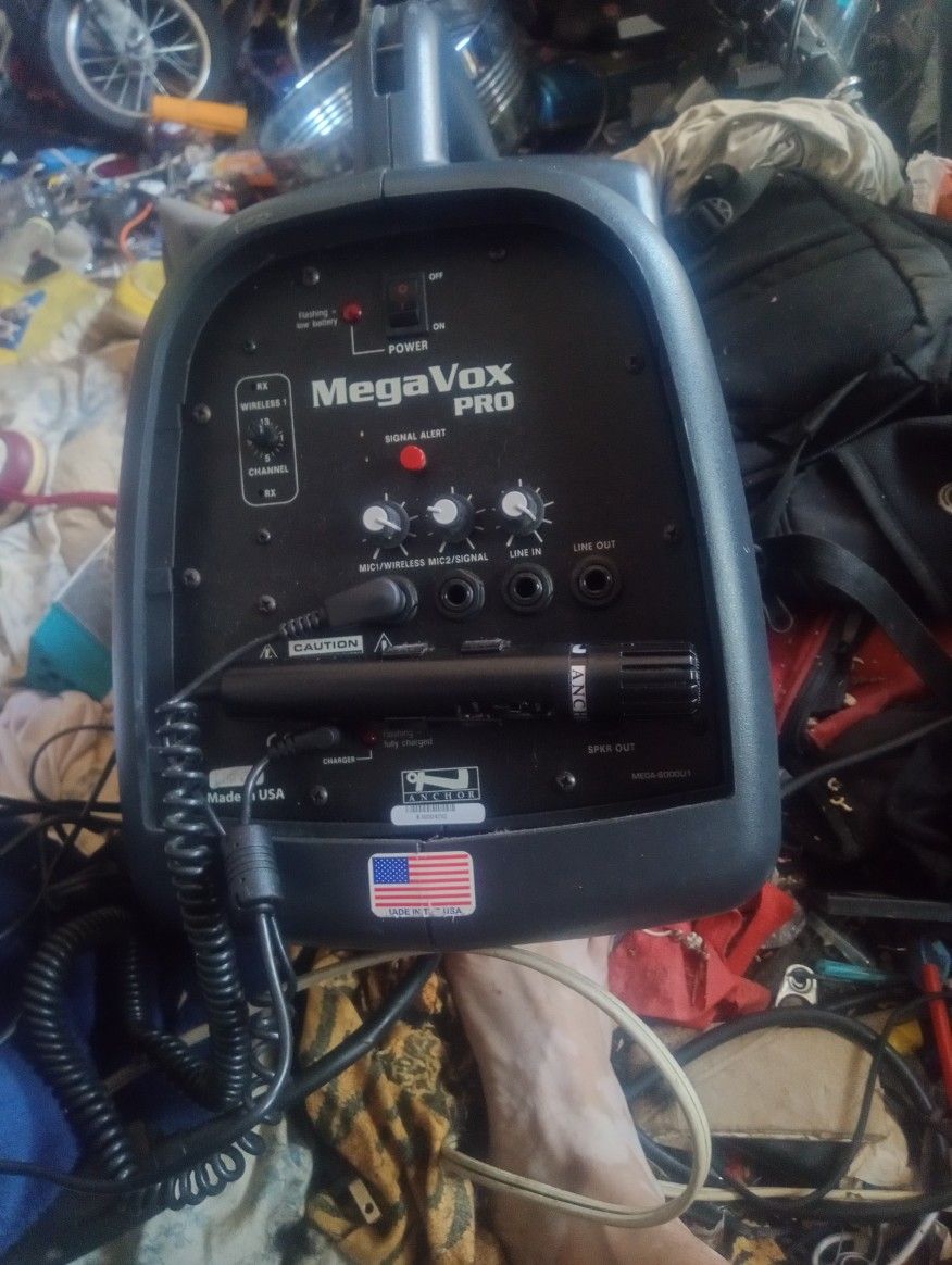 It´s a very loud mega vox pro I found used it one time I just had no use for it it weighs approximately 15 pounds