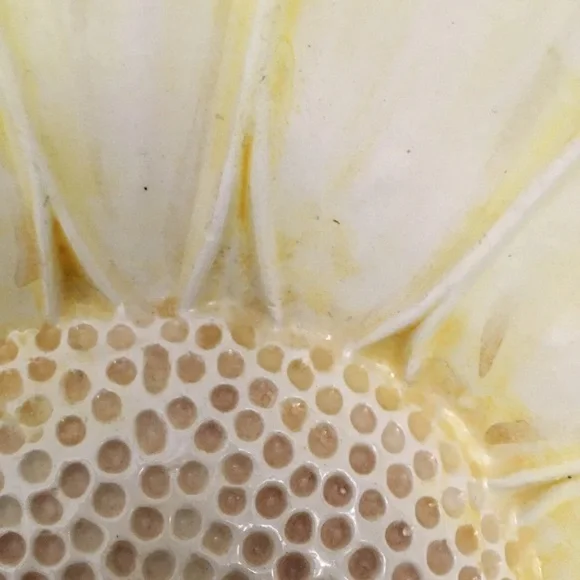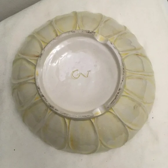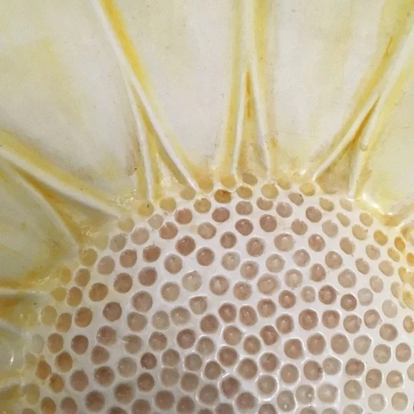 Bowl is in good condition.There is fading of the original color because of the age.Bowl is supposed to be a sunflower and there does not appear to be cracks or chips.Please examine pictures carefully.