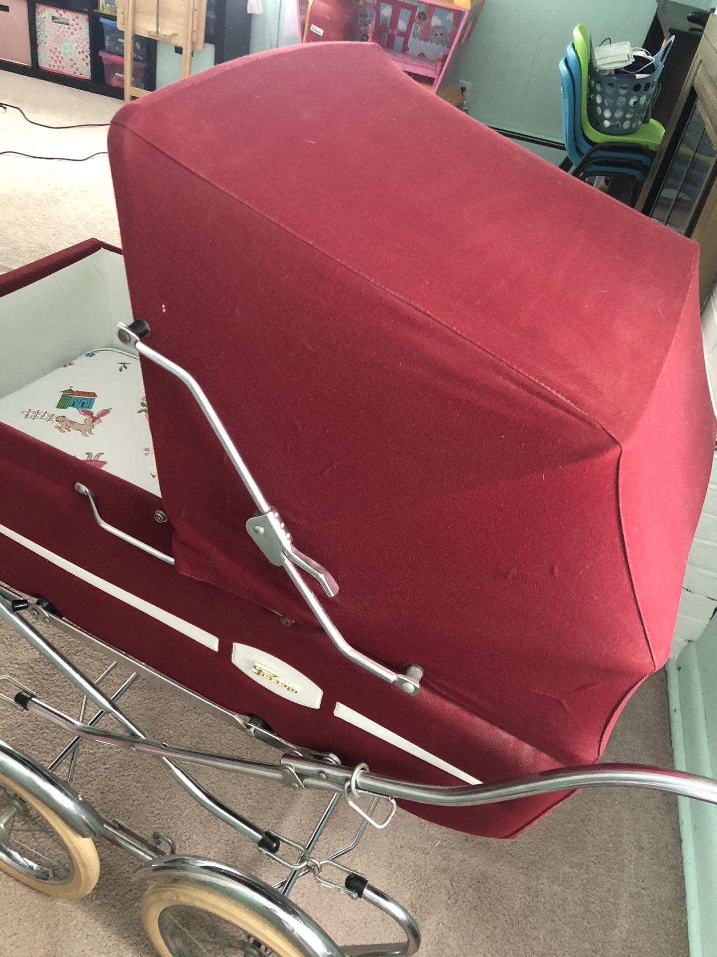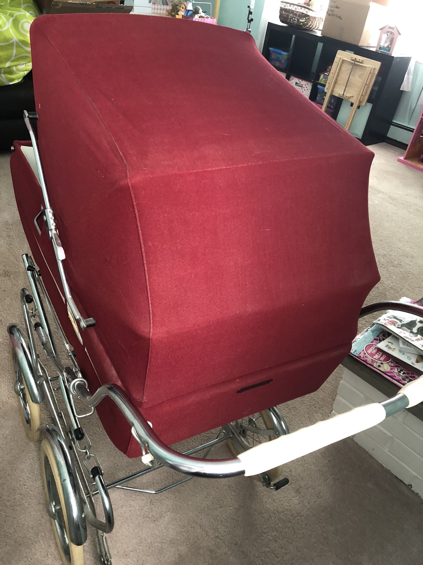 Antique burgundy velvet Perego baby carriage pram. In amazing condition with original pad! Perfect for decoration, storage of stuffed animals or dolls or to USE! Smoke Free home. :) Seen elsewhere for $700-$2,000!