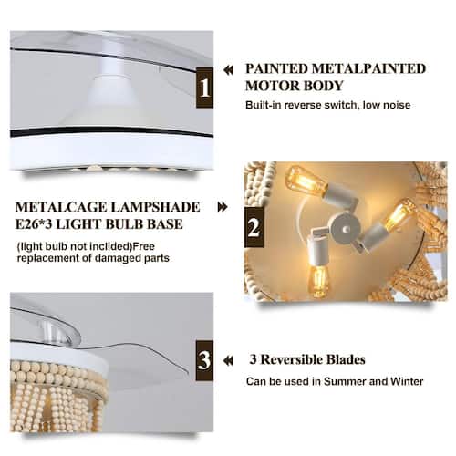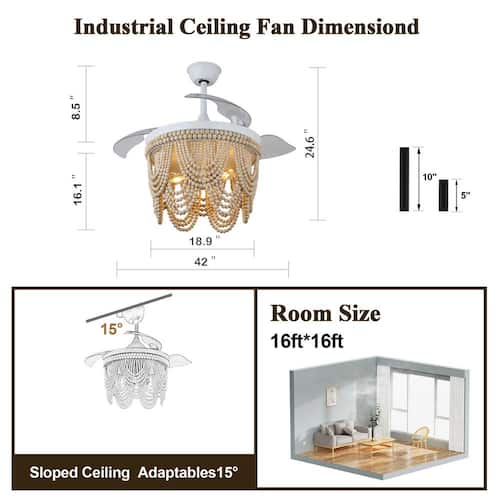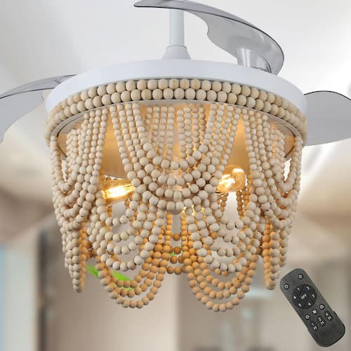 About This Product:Add a touch of elegance and charm to your living space with our 42 in. Bohemian ceiling fan with light and remote control. This beautifully crafted ceiling fan features intricate design and beaded decorations, creating a stunning centerpiece for any room. The powerful yet quiet 6-speed reversible motor ensures year-round comfort and efficient air circulation. The included remote control offers easy operation for added convenience. With flexible 5-inch and 10 in. downrods, it adjusts easily to fit your ceiling height. Use this exquisite Bohemian ceiling fan to illuminate your home with a fashionable and exquisite style.