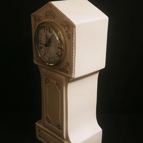 Vintage Irish Parian Donegal china miniature grandfather/mantle clock.Battery operated,tested,works.Approx 9.5" highUSED - but in excellent condition - no chips or cracks.clock heart made in Germany.