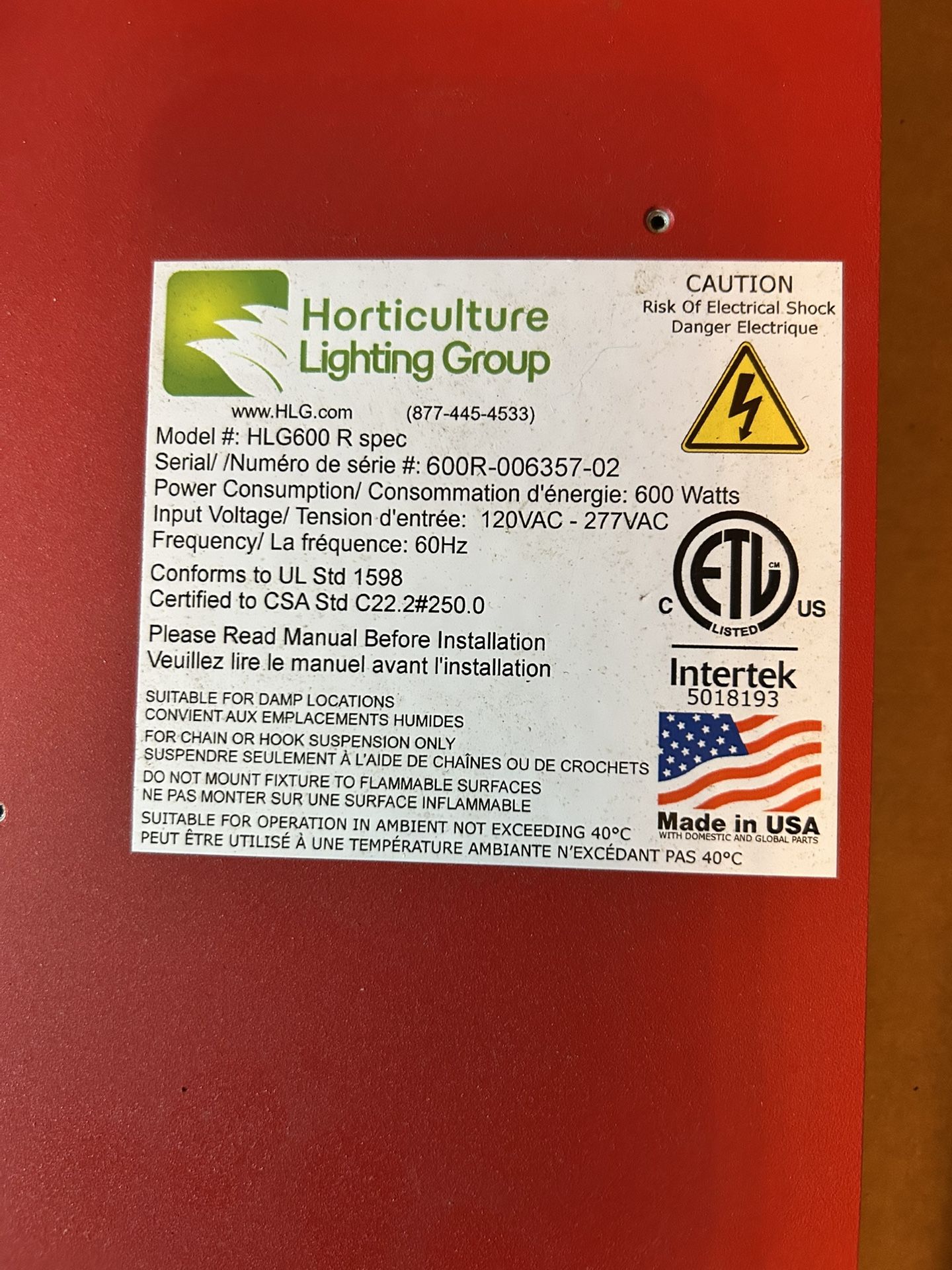 In very Good Condition LED grow light Out of Box Used only 1 year Intense bright light, dimmable.Plug it into residential outlet, hang and goPerfect for tents Pick it up and also pick up Additional gear like: -adjustable hanging strings and triangles - exhaust fans and ducting- timers and measurement tools
