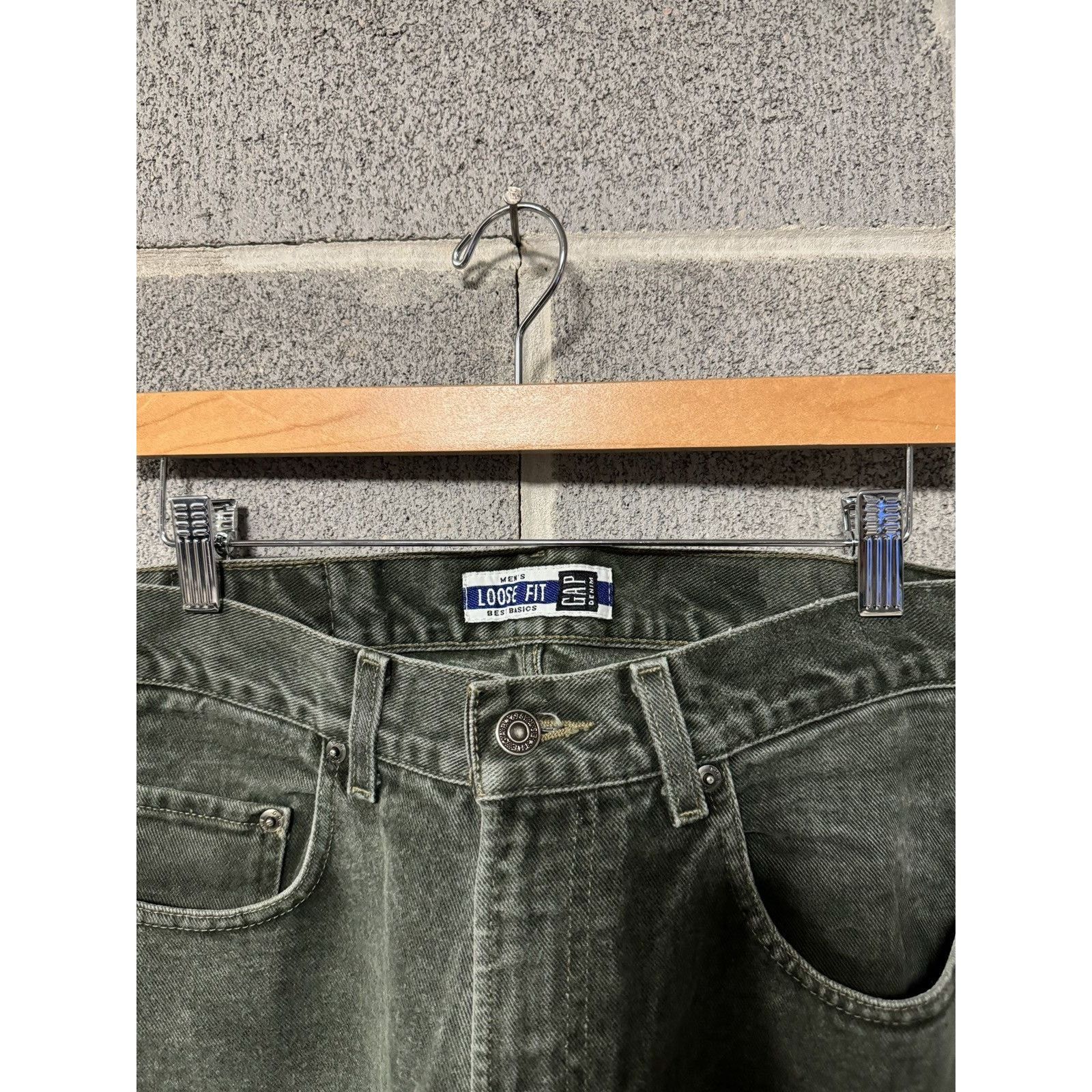 vintage gap loose fit denim skater jeansVery neat colorfits and measures32x30inOutseam: 41ingood pairgood colorgood overall conditionno major flawsleg opening about 8 inloose fit straight leg, bit of baggy