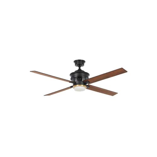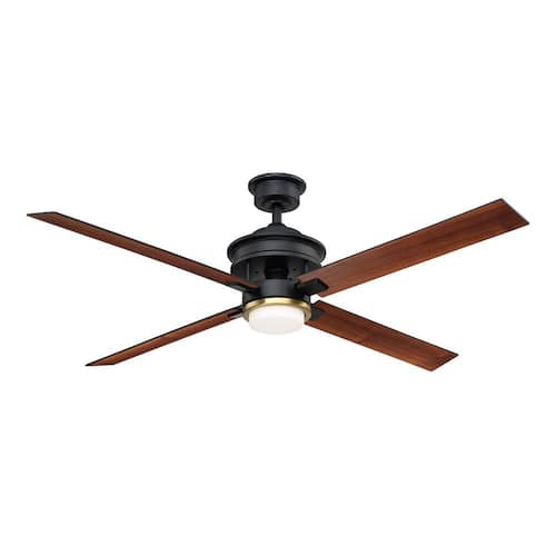 About This Product:The Lincolnshire 60 in. LED Matte Black Ceiling Fan has a very interesting housing where the it spins along with the blades. The reversible matte black and walnut blades will help coordinate within your rooms decor. The 14-Watt Samsung LED light source is both energy efficient and long-life span of 50,000 hours. The remote control operates the light and speed functions and includes batteries. This fans also comes with a lifetime motor warranty. DC motor fans are 70% more energy efficient than AC motor fans (when comparing efficiency (CFM/W) of DC vs AC motors in published FTC Energy Guides for ceiling fans).