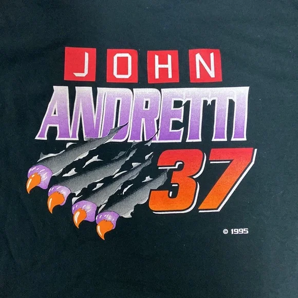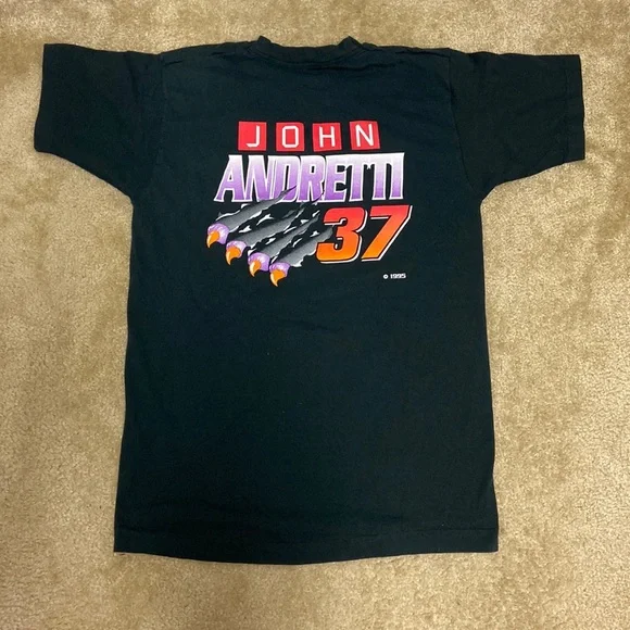 Vintage John Andretti racing shirt from 1995. Single stitch, made in USA. Extremely rare shirt, none like it for sale or sold on the internet. No cracking or fading, great graphics on both sides. Measurements are: 19.5x28.5Sleeve length:7”Sleeve opening: 6.5”