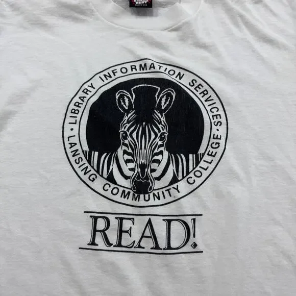 Vintage Lansing Community College Shirt Mens Large White Library Reading 90s LCCCondition: Good overall condition. Please refer to the measurements and photos.Measurements (Pit to pit x Length [Shoulder to bottom hem] : 20in x 25in PLEASE NOTE: The item you see is the EXACT item you are receiving. This item is used, therefore the pictures show the best description of the condition of the item. If you have any questions about any of the images, PLEASE feel free to message us. Please see pictures for an accurate description of the item and condition