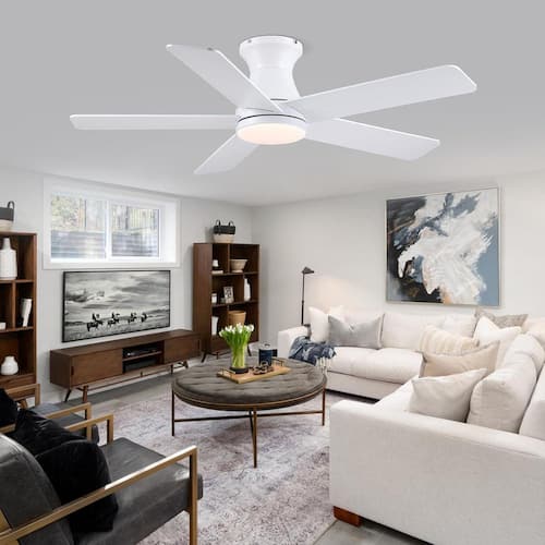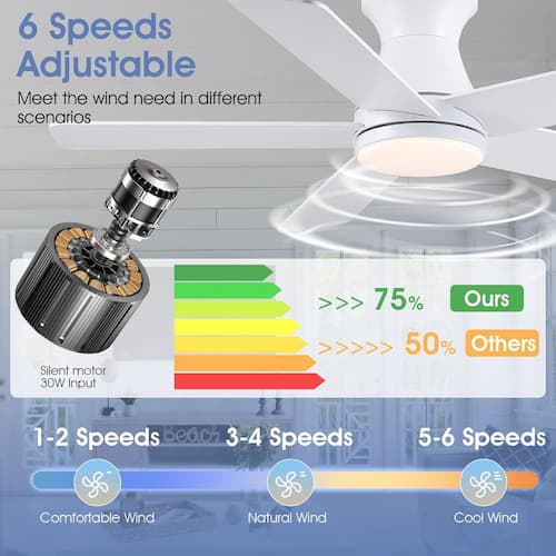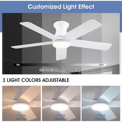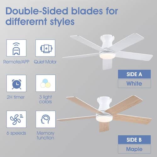 About This Product:The 52 in. 5 Plywood blades flush mount ceiling fan with remote/APP will add much character to your space. The minimalist look will match your different decor styles. With a DC reversible motor, this fan has a super quiet performance, no need to endure the noise while saving energy both in the Summers and Winters.