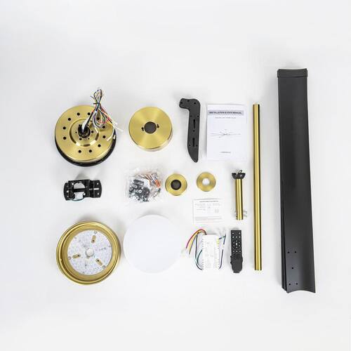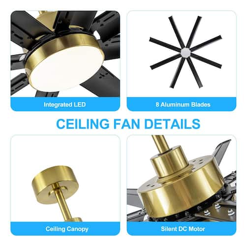 About This Product:The Gabriel 72 in. Gold Ceiling Fan presents an expansive and fashionable design. It provides the option of reversible aluminum black blade finishes. The adjustable white integrated LED light kit offers a variety of lighting options, including 3,000K, 4,500K, and 6,000K light output choices. With a DC motor offering 6-speeds, the included remote control allows for convenient adjustment of timer, speed, and reverse functions, ensuring comfort throughout the year.