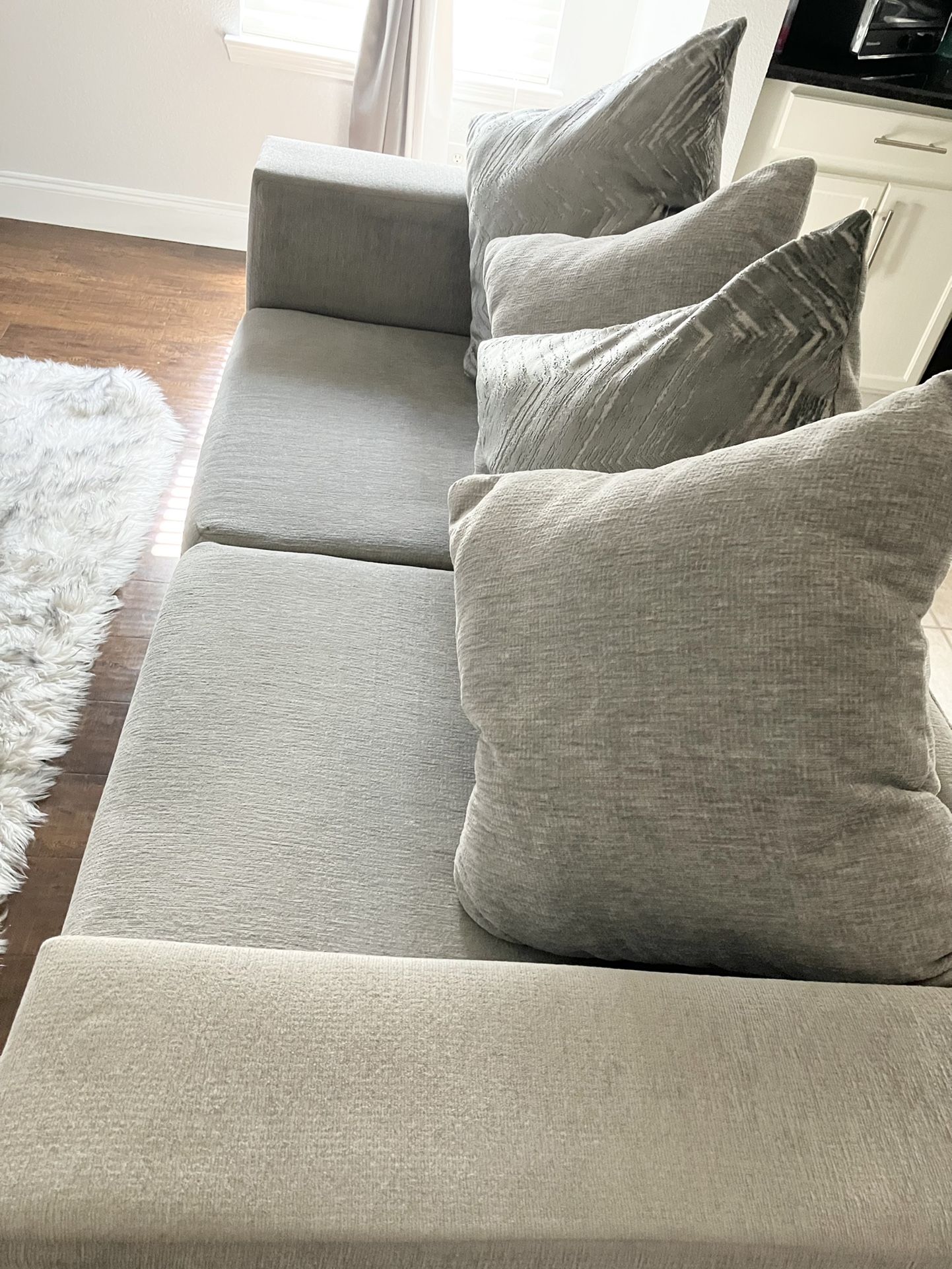 Good condition selling sofa love seat 250 Their suede and they’re like a silver gray good condition no cuts or stains