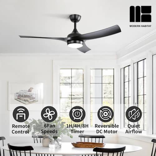 About This Product:This 52 in. ceiling fan features a highly efficient DC motor, saving 65% more energy than traditional AC motors while operating quietly for a peaceful environment. Equipped with three ABS blades, it delivers powerful airflow, ensuring comfort in medium to large indoor spaces like bedrooms, living rooms, and offices, as well as covered outdoor areas. The included remote control allows easy operation with 6 wind speeds, a timer, and a reversible function for year-round use. Designed for convenience, it supports ceiling slopes up to 15° and comes partially pre-assembled for easy installation.