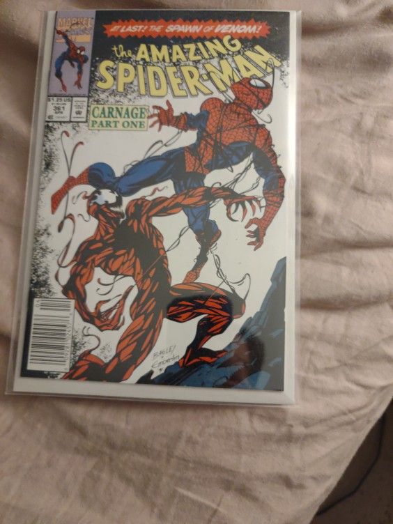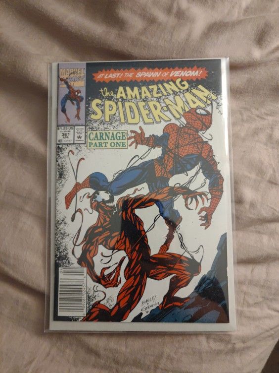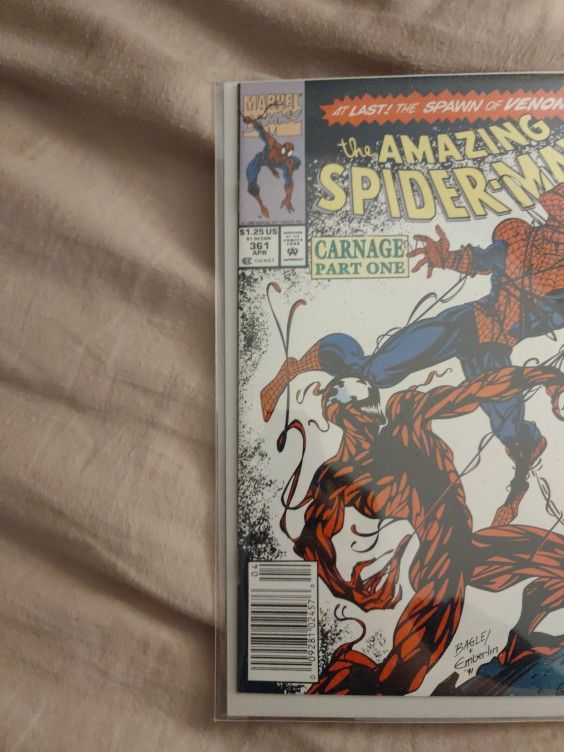 Just in time for the new movie premiering Carnage himself, I´m selling Amazing Spider-Man #361, his first appearance. I had a grader look it over at VA Comicon 2021, and he estimates it at a 9.2-9.4 NM. No cover issues or spine problems. It will only go up in value!