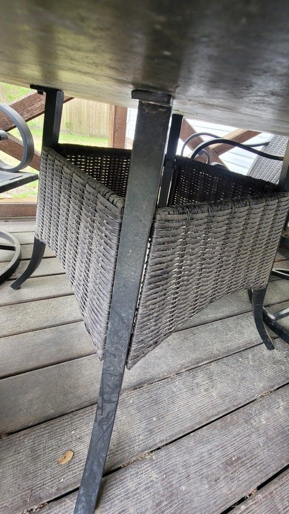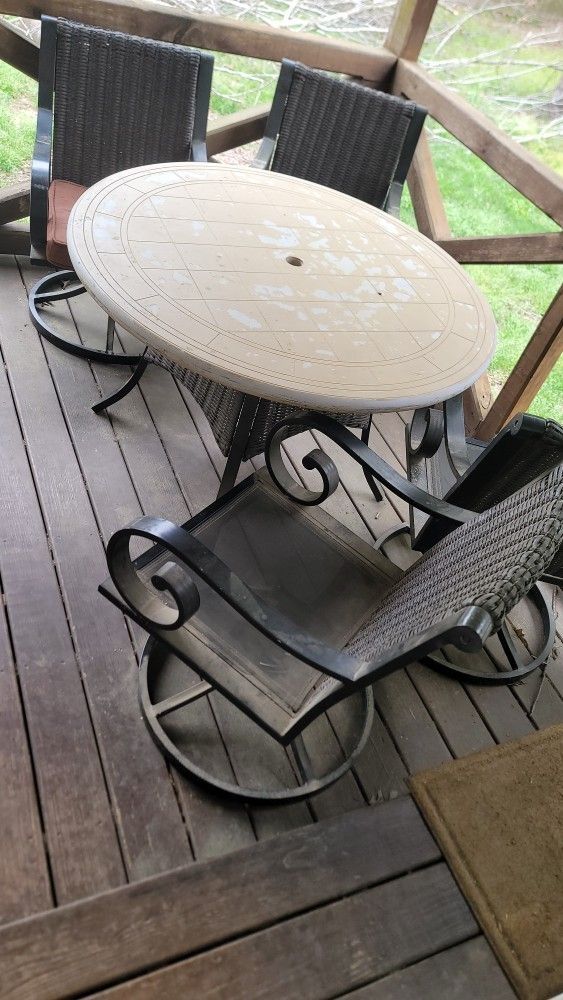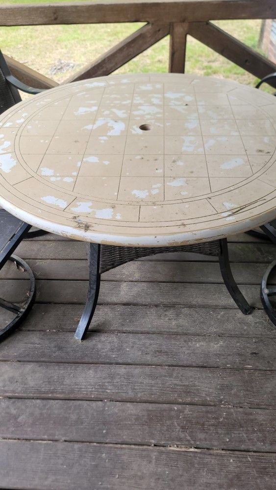 Everything is in very good condition except the paint on the table which is very easily painted. Nothing is broke 1 table 4 seats
