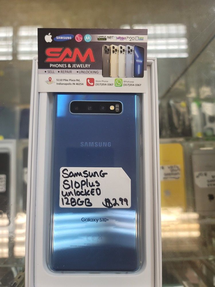Samsung Galaxy S10 Plus Unlocked for every carrier Good condition 128gbWe are located inside maga mall 5110 pike plaza rd Indianapolis IN 46254We repair and unlock phones also