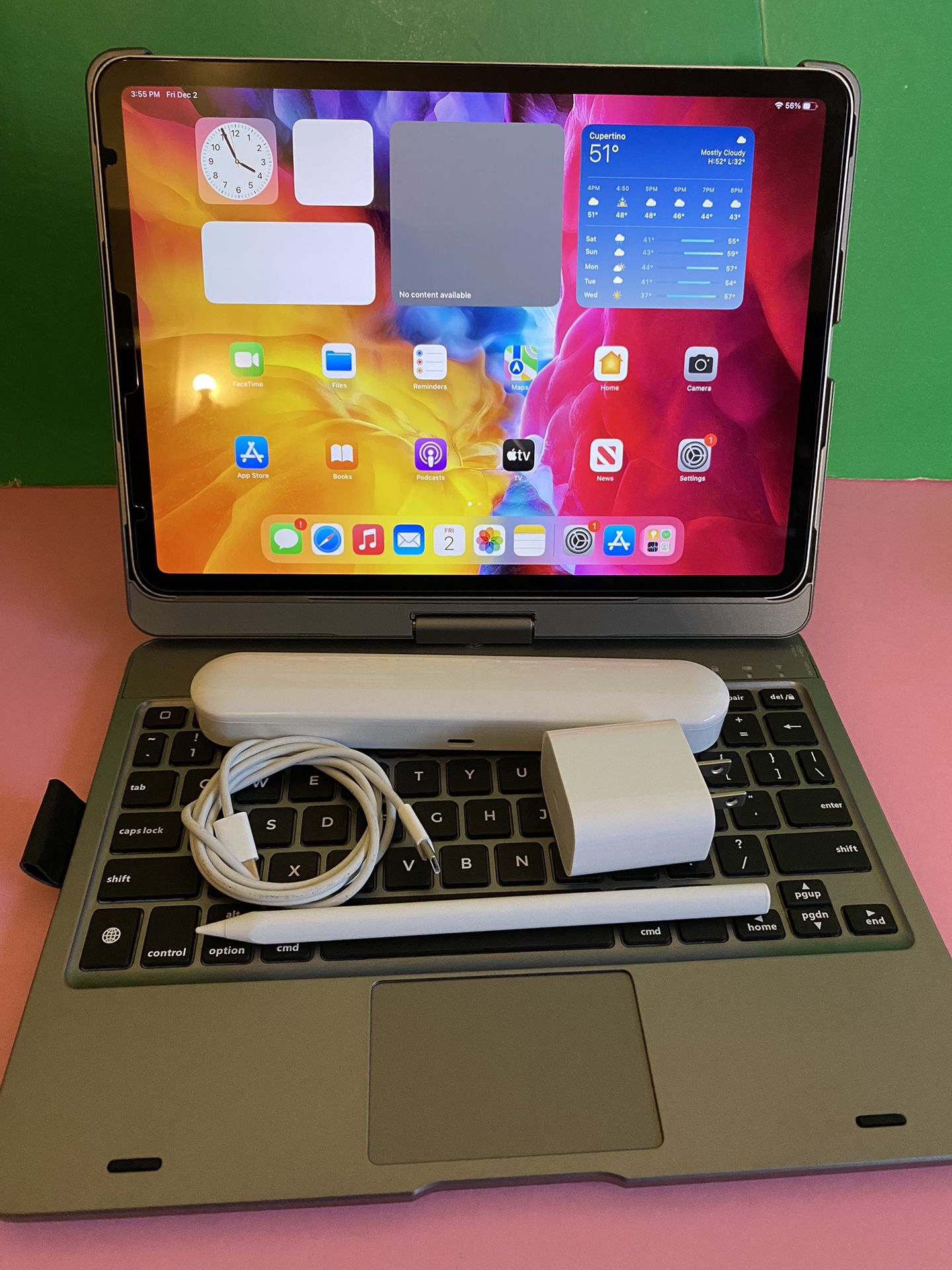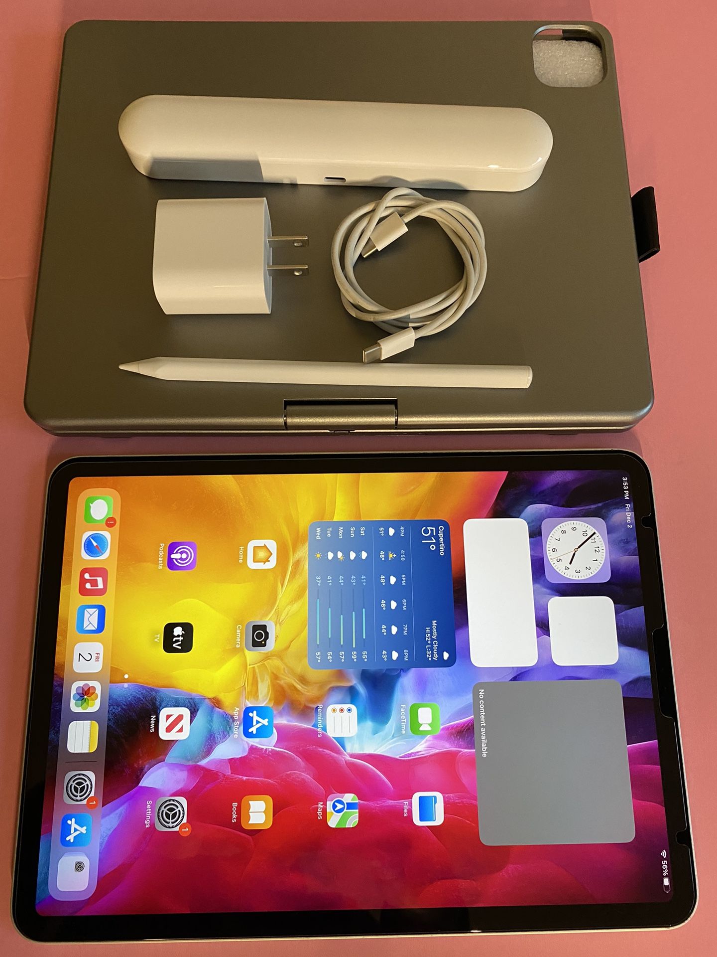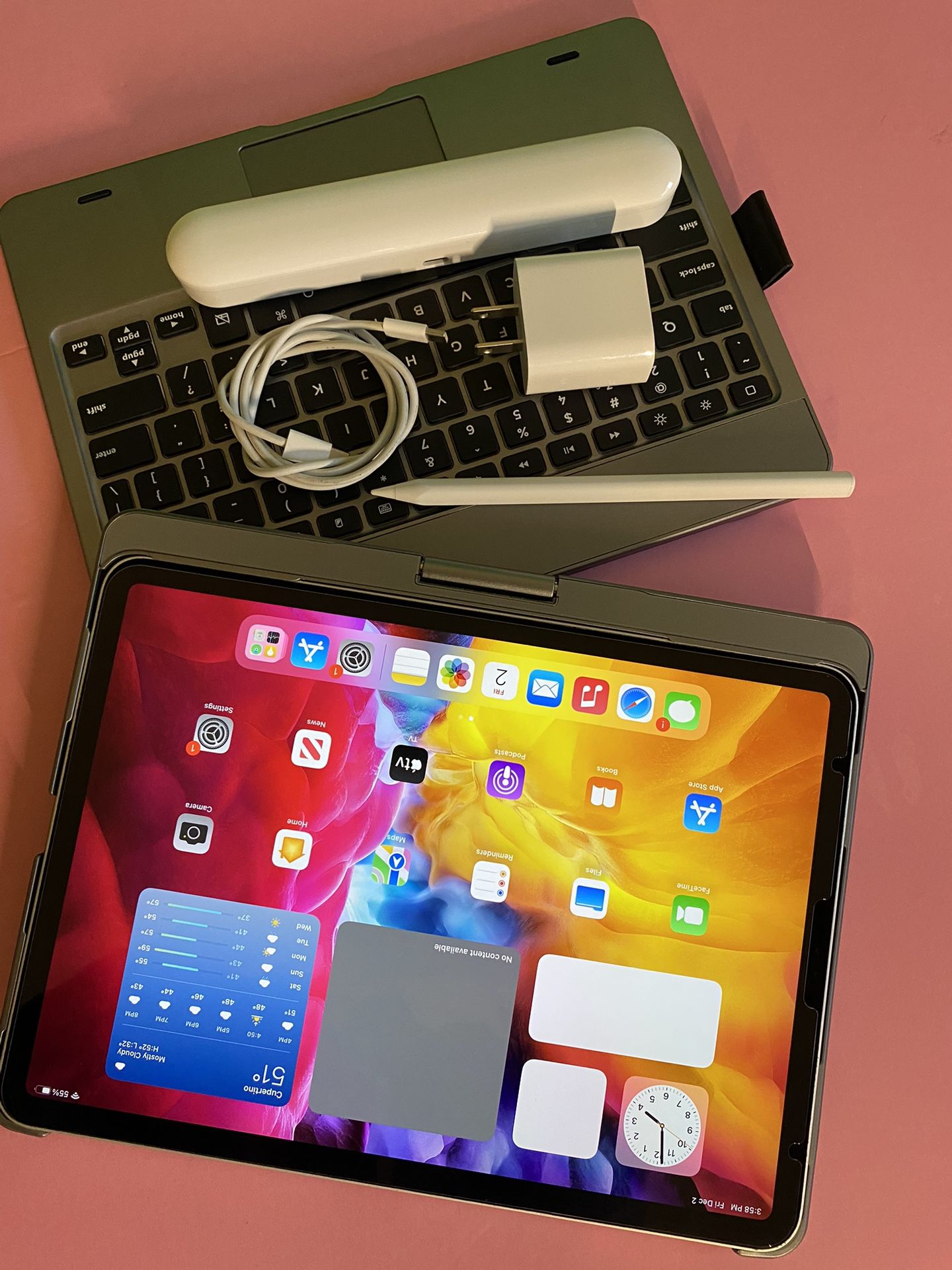Apple IPad Pro 11” (2020 / 2nd Generation)Excellent condition (works perfect) No any kind of lock (all clean) No Icloud/password all cleanFactory reset Ready for new user 11” Liquid Retina Display / True Tone 256GB memory (WiFi only model) Face ID (unlock by face) 4 speakers (great sound) A14 Fast chip (fast processor) 4K video recording (2 HD cameras) Siri, Facetime, GPS, calendar, app store, etc. pre installed. Long Battery life ( iOS 15 updated)Youtube, Netflix, HBO, PubG, Pro create etc . all app supported Apple Pencil 2nd Gen. compatible Apple Keyboard compatible Good for gifts (birthday/christmas) school work, business work, home work, entertainment etc. Comes withOriginal charging cable Original charging 20w power adapter New Bluetooth keyboard case (with track pad) New magnetic stylus pen (works like Apple pen)$599 firm firm (No trade) Cash only / pick up only Serious buyer with immediate pick up onlyNo holding first come first serve Low ballers will be ignored Pick up El Monte (Welcome to check it before you buy)