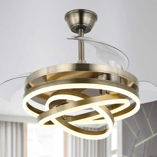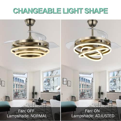 About This Product:With a brilliant combination of charm and function, designed as a contemporary ceiling fan and a fancy chandelier, it brings you a lot of light and helps to ventilate your room. With the exclusive latest DC motor technology, it guarantees a 65% energy savings compared to conventional AC motor ceiling fans. 6-speed wind and 3-color light modes, all of which can be controlled by a remote. In summer, the air flowing from the ceiling fan creates a fresh breeze. In winter, the ceiling fan distributes the room´s hot air evenly in the opposite direction. For your home life, it provides a comfortable home atmosphere. Details: Color: Chrome/Black/White/French Gold Material: Metal, Plastic Voltage: 110 -120-Volt Color temperature: Dimmable Dimmer Switch: NOLight source type: LEDLight Kit Included Control: Remote Control Included Remote Batteries not included Light Wattage: 24 WMotor Wattage: 41 WNumber of Blades: 3 Retractable Blades Speed: 6Location: Indoor Only Room Size: Small and Medium rooms (up to 12 X 14)UL Listed for core partsETL Listed for ceiling fanSloped Ceiling Adaptable: Adapt to15-30° Package Includes: Ceiling Fan with Light, Remote Control, Installation Manual, 2 Down rods (L5 in. and L10 in. )Hardwired, Assembly Required.