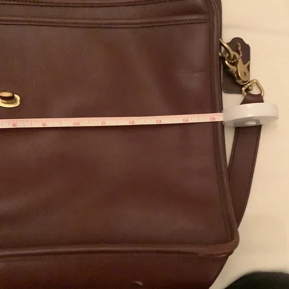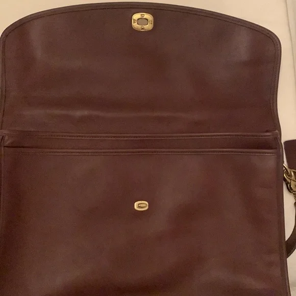 Vintage Coach bag. Price reduced! Timeless and functional. You will not want to miss out on this brief! Great shape. Little wear on bottom left corner as shown in pics. Leather very soft. Gently used. Beautiful bag. Very well kept. True brown in color with gold hardware. Removable and adjustable strap. Interior of bag in perfect conditionBeautiful inner suede lining - no stains or wear. Two inner pockets with one being a zip up closure.