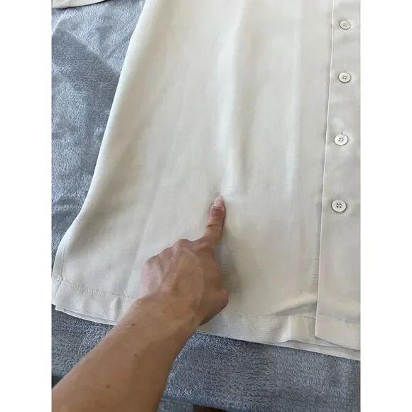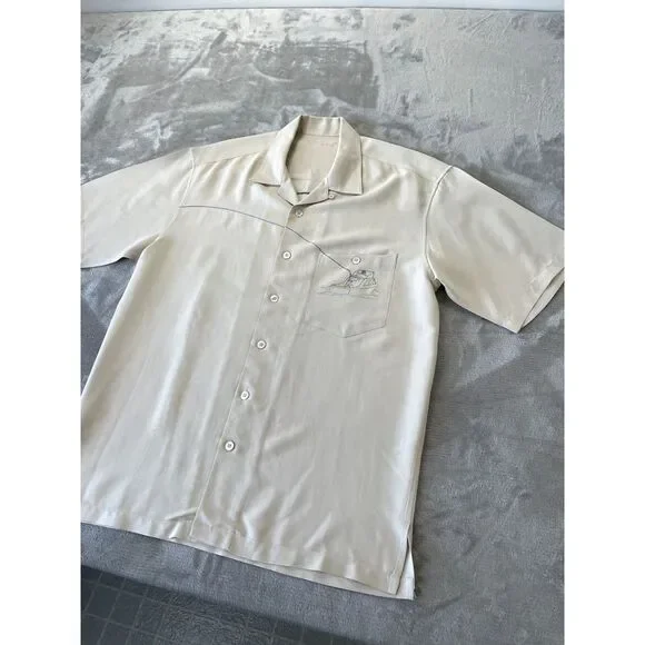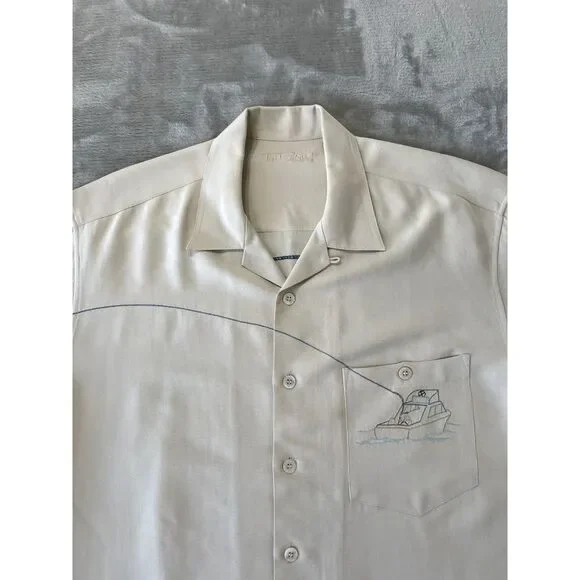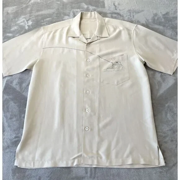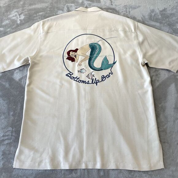 Tori Richard Button Up Shirt Medium Beige Embroidered Bottoms Up Bar MermaidArmpit to armpit: 23.5"Neckline to hem: 30.5"This item is in Preowned condition. Please view and zoom in on all of the pictures as they are part of the description.(SEE MEASUREMENTS TO ASSURE PROPER FIT)If you need a different measurements please message us and we will be happy to get them for you.We have a huge selection of New and Preowned items and we list new items daily, so please click the "SAVE SELLER" button so you can be updated with our new listed items. THANKS FOR THE SUPPORT!