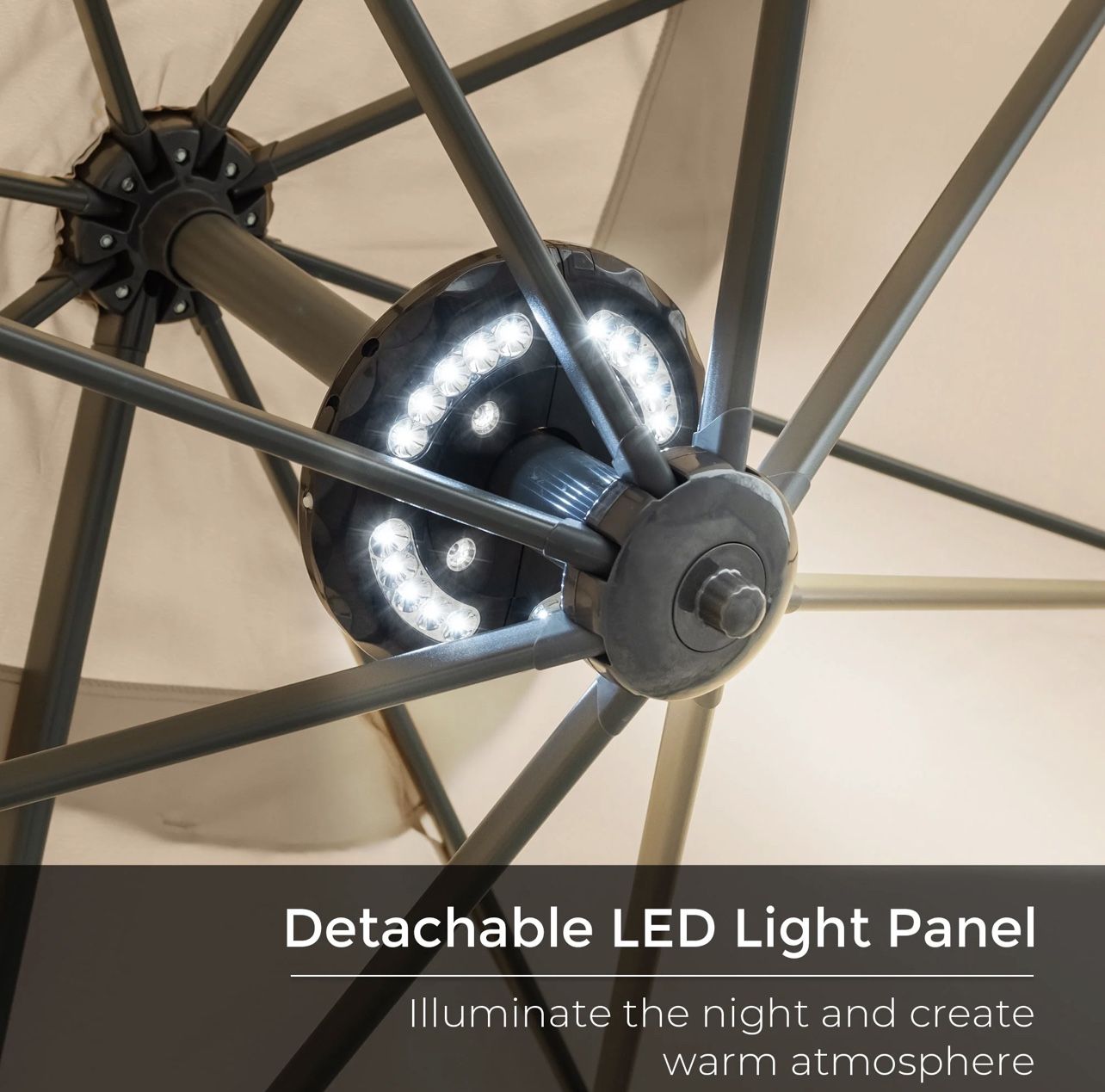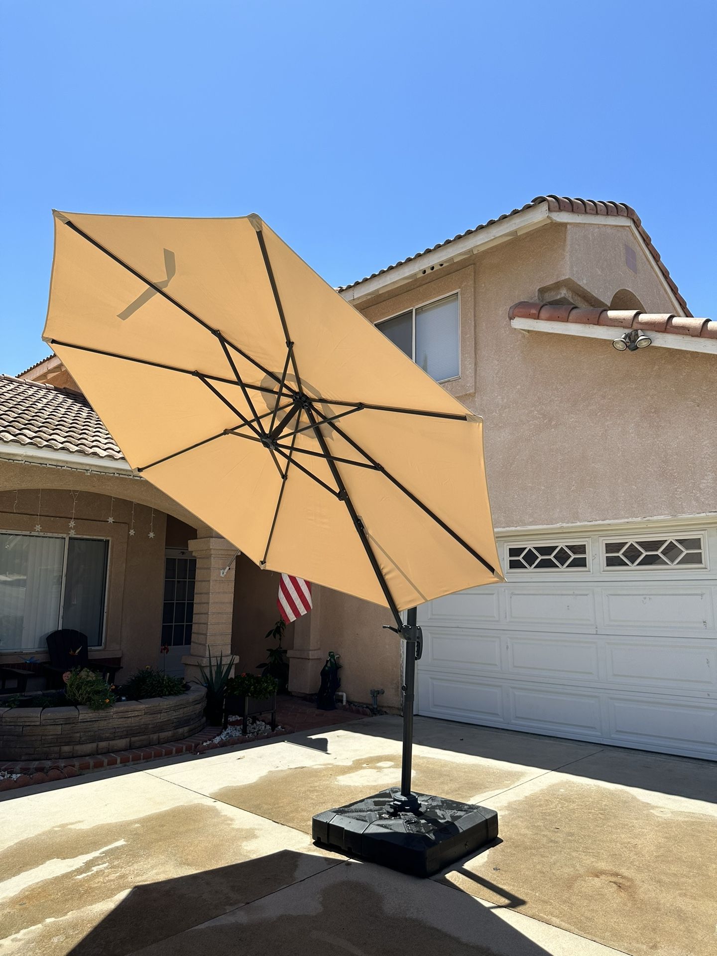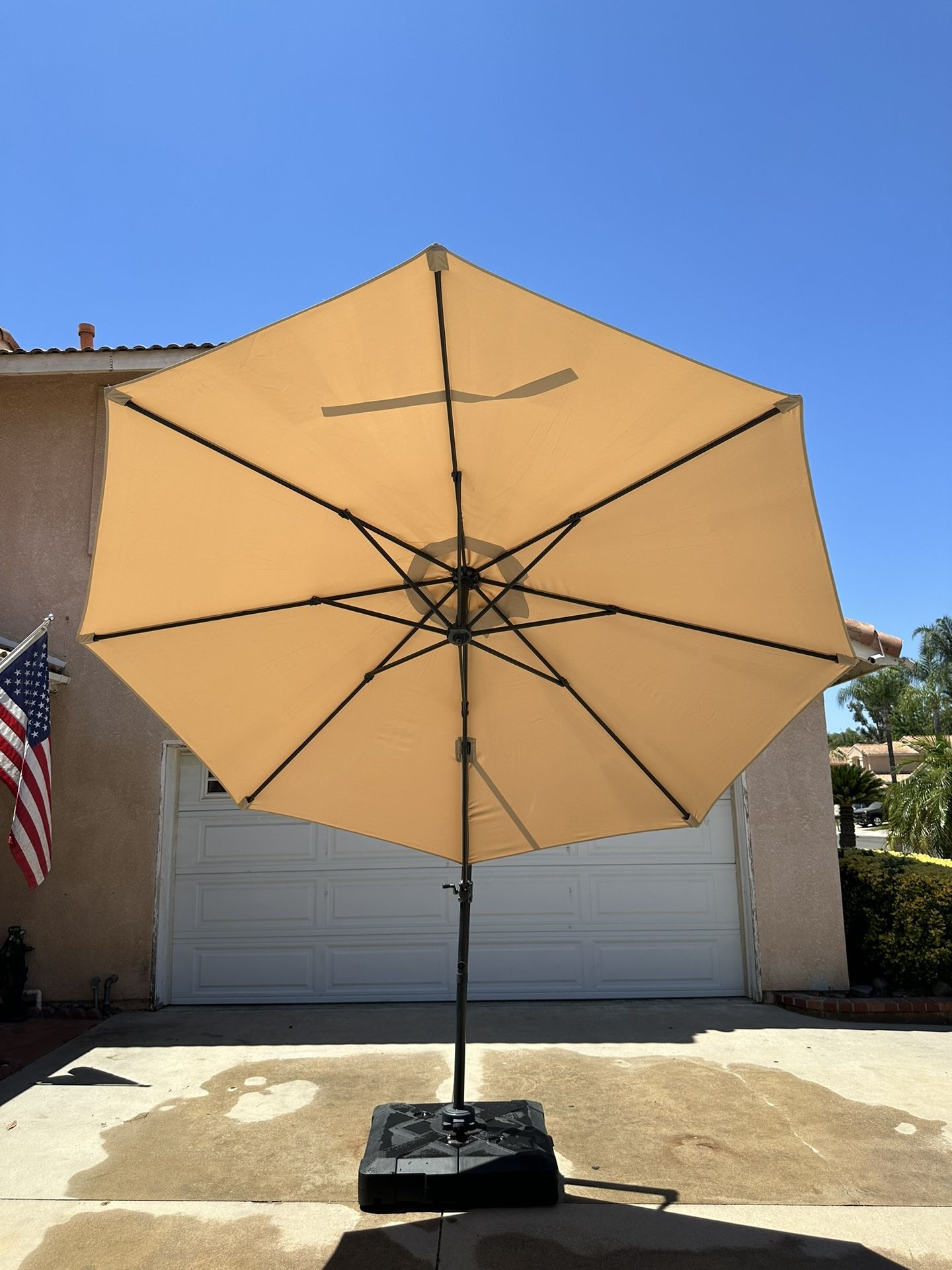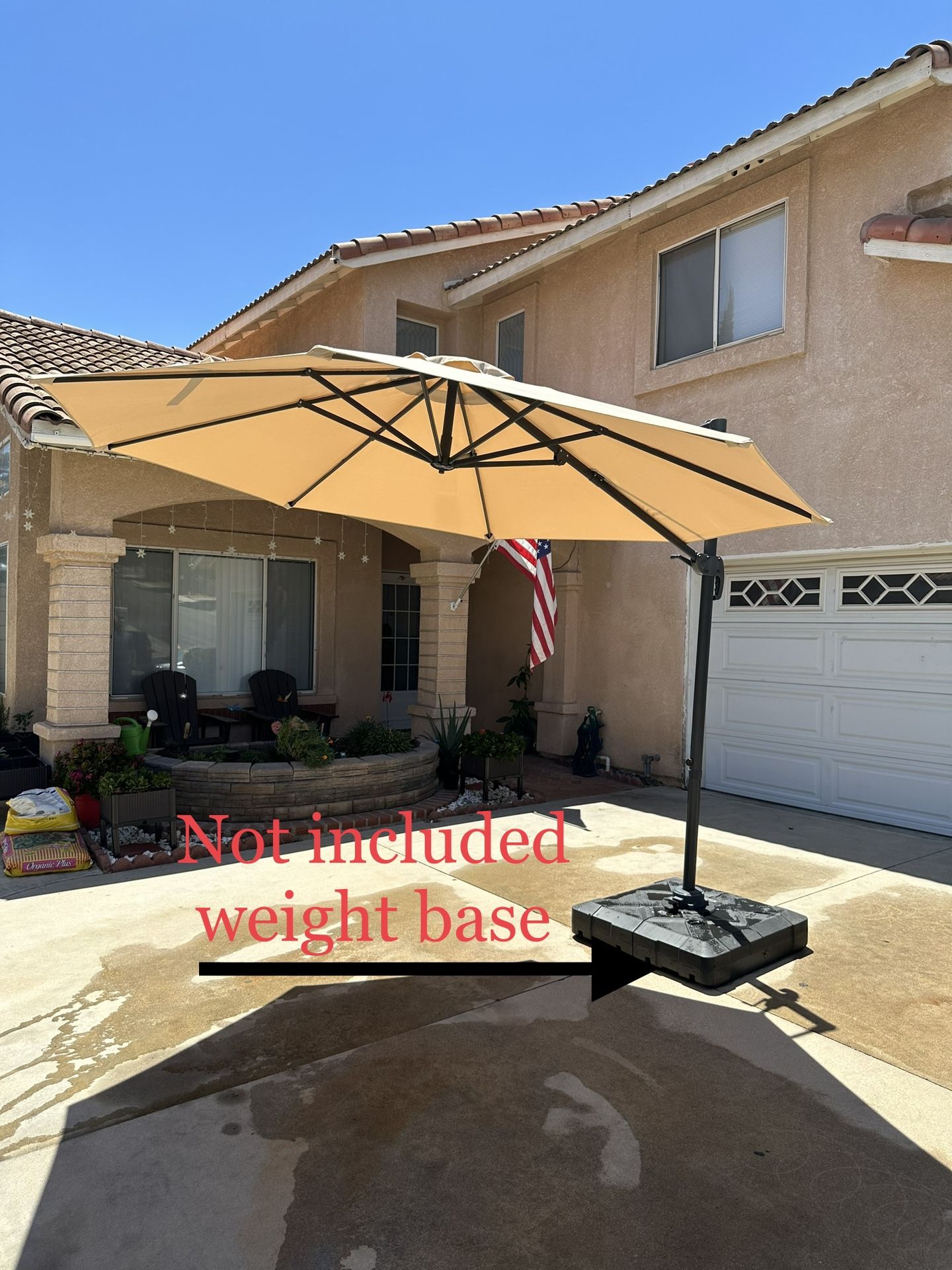 UPGRADED CANOPY: The WIKIWIKI M Series umbrella has a PU coated canopy is made of 280 gsm solution dyed fabric with US standard grade 5 protection from light. The thick material provided excellent UV resistance and is waterproof up to 800 pa´s of pressure. We proudly offer a 3-year canopy warranty. ROBUST & STABLE: The cantilever umbrella uses a triangular structure to provide support to the whole umbrella, which helps to reduce swaying and rocking of the canopy. For the 2022 version, we have improved the joint on the top triangular structure into aluminum die cast. Aluminum is light but sturdy, which makes it the perfect material for stability. ROTATION & TILTING: The cantilever umbrella can be rotated 360° horizontally by simply stepping on the pedal and twisting the pole. In addition, the infinite adjustable tilt mechanism can change the angle of the canopy and adjust the shading area to provide maximum shade all day. INNOVATIVE DESIGN: Our 2022 design doesn’t just stop with functionality. We added a light socket to the center hub of the umbrella for extra light and ambiance. We also added Velcro straps to the end of each rib so you can install string lights, wind chimes or other décor that will make your outdoor area feel like home.