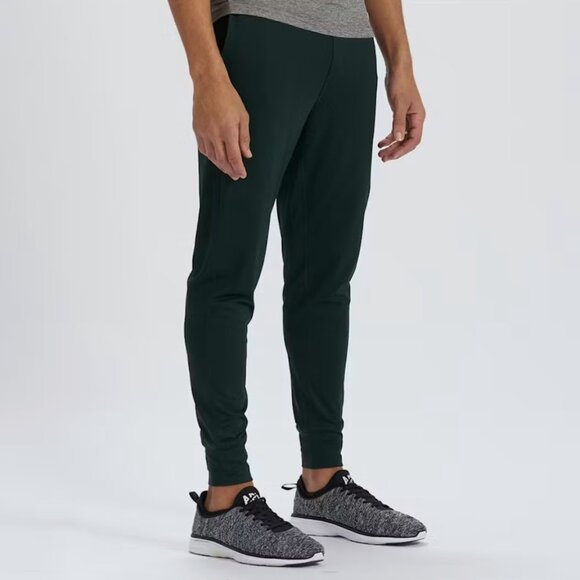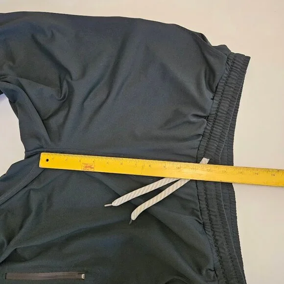 •Brand: Vuori •Size: XL•Sunday Performance Jogger•Elastic waist with drawstring•Pockets – 2 open hand, 1 zip leg, 2 zip back •Style #V416•Color: “Blackened Green” (see picture #1 for closest color representation •Material: 88% Polyester 12% Elastane •Condition: Excellent pre-loved •Approximate Measurements: Waist 16.5 in. (plus stretch)Rise 12.5 in.Inseam 27.5 in. (#1185)