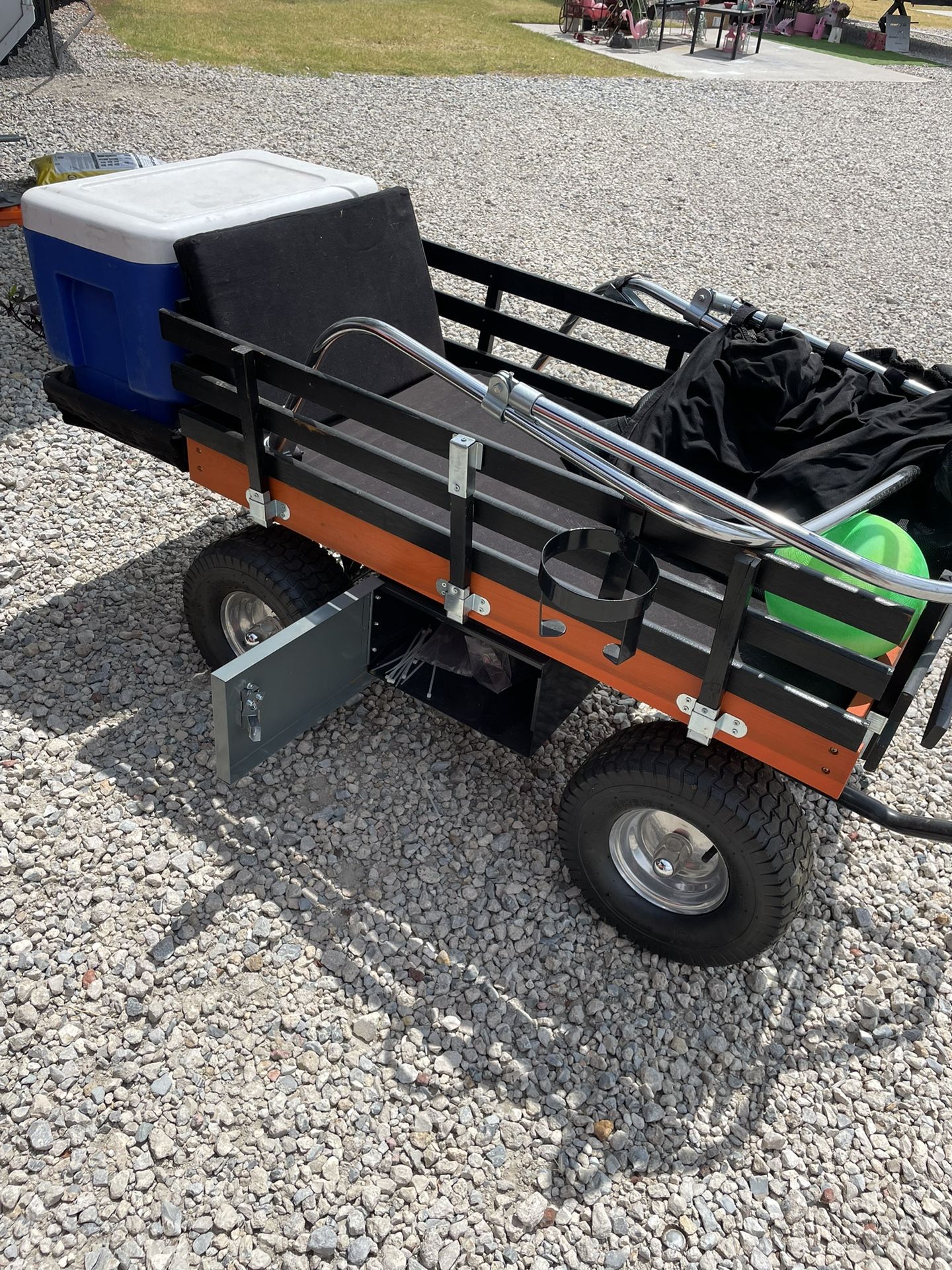 Paid 450 for this wagon.. hardly used but need gone.. 200 obo needs a lil tlc as u can see in the pic some of the boards are coming off but great to take the fair or park trips with cooler attachment and two cup holders.. also has shade and screen covering