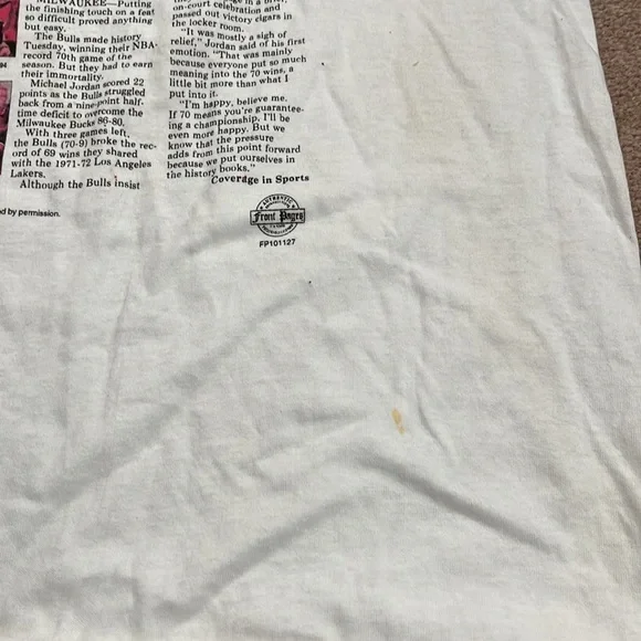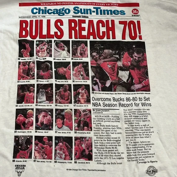 Chicago Bills 1996 Memorabilia T-ShirtSize:XLStill has authenticity sticker onThis shirt has never been worn but does have some damage (marks) from being in storage. I tried to note all marks in the last pictures.