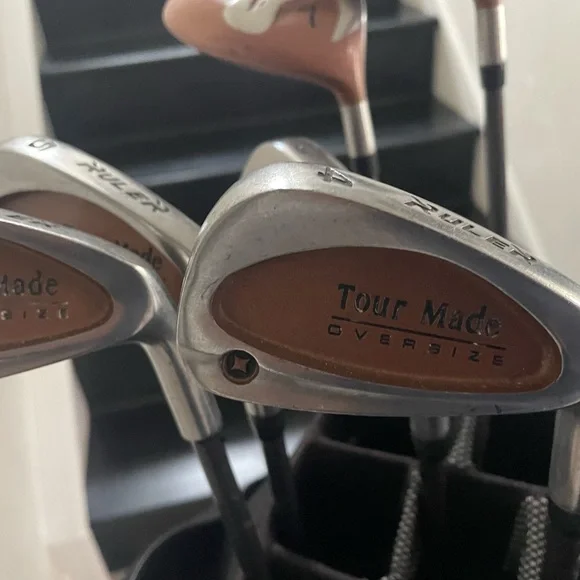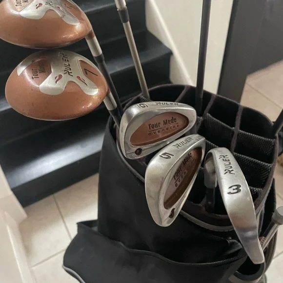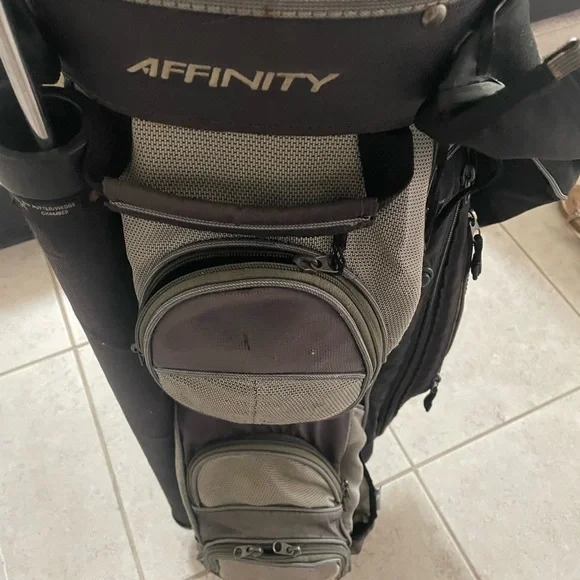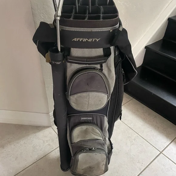 Mens Golf Set Tour Made 9 Pc In Right Handed Plus Golf Bag Affinity with 14 club dividers and rain cover No shoulder strap See pictures for details and conditions