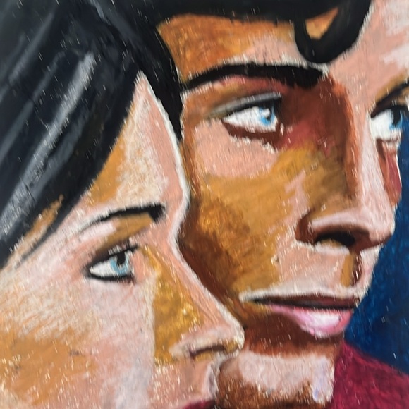Original Superman and Lois drawing in oil pastels original art sale 8 x 10 and an old mat it would have to be re-matted probably or double matted signed original by me. I did a whole series of famous people, and I really loved the original Superman movie, but I tried to make it also universal to all Superman´s and lowest lanes any questions please ask and thanks for looking trying to liquidate my studioand closet sent home and raise money. Thank you so much for looking. Have a nice day.