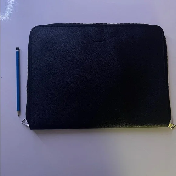 This sleek portfolio can hold a 13in macbook air and documents. no tears, scratches, or noticeable flaws