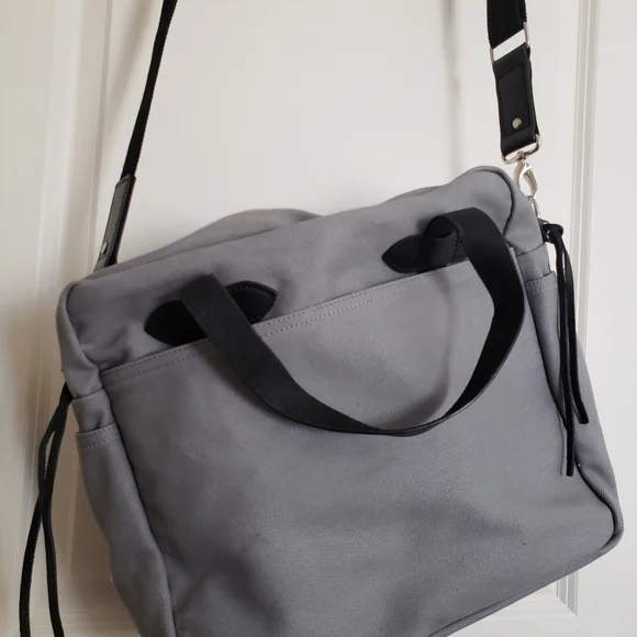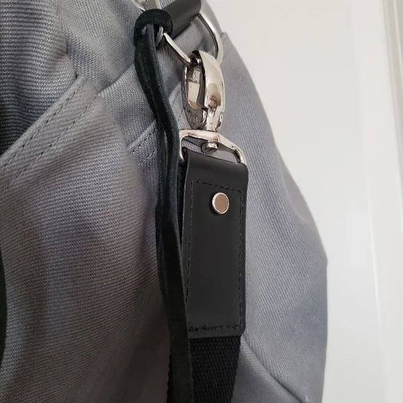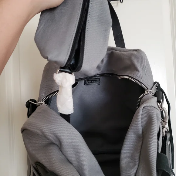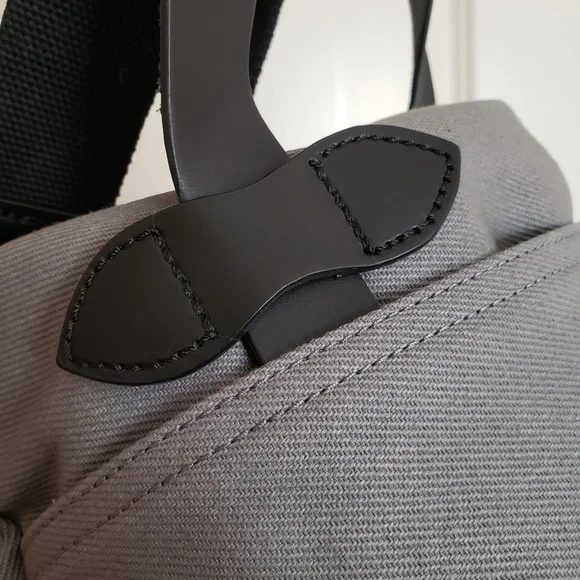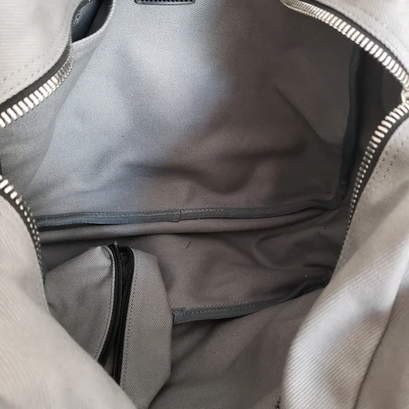 new and never used // doesn´t have tags, but still has protective wrapping. This bag is super sleek bag with leather straps and accents. It has an attachment and compartments.