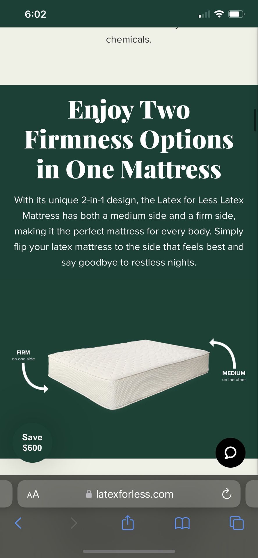 Brand New set of split cal king LATEX FOR LESS 9 inch double sided mattresses. Each mattress measures 36 inches wide, 84 inches long and 9 inches tall. These mattresses can be flipped over and used on either side. One side is firm and the other side is medium rated. This set is perfect for and adjustable bed. The mattresses retail for $1,494 plus tax. I am only asking $900 for both. I can also haul away your old mattress for free if needed. I do have a set of split cal king sleep science bases available for 1200 more. The bases have massage and 3 adjustable areas per side. The leg height is also adjustable.
