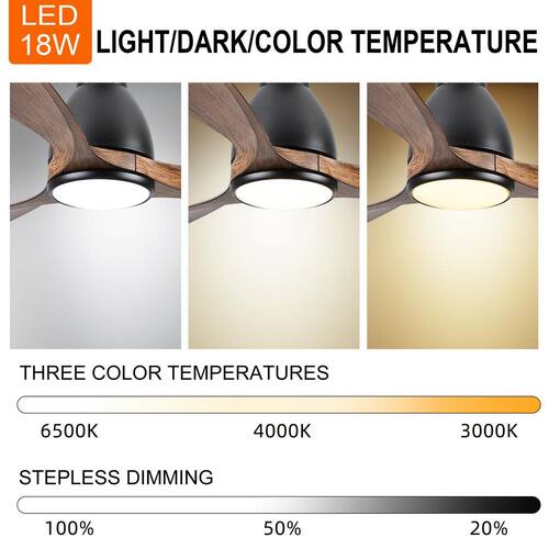 About This Product:The YUHAO 52 in. distressed wood dark brown ceiling fan offers chic, minimalist style. It features an integrated LED light kit with white shade, which adding to the energy and cost-saving benefits of the ceiling fan. Add this ceiling fan to any large room, from bedroom to living room, and enjoy year-round comfort. it complement traditional and modern decors. It´s easy to get the perfect settings with the remote, which controls the speed functions and independent light. The 18-Watt light is energy-efficient and dimmable with color changing technology. The energy DC motor provide 6 speed wind control in forward/ reversible.