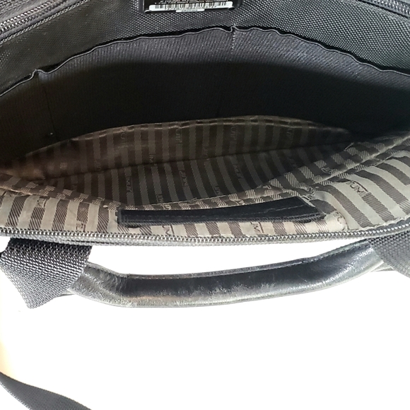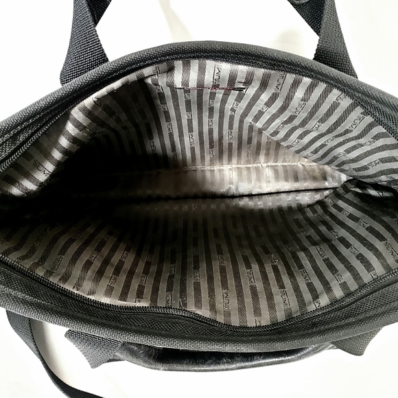 In good pre-loved condition, no major signs or wear. All zippers work, no rips and the leather Tumi nametag is included but missing the leather buckle strap that attaches the tag to strap is missing. Tag will be inside the bag. Approx. Measurements are 15" W x 11" H x 4" D.