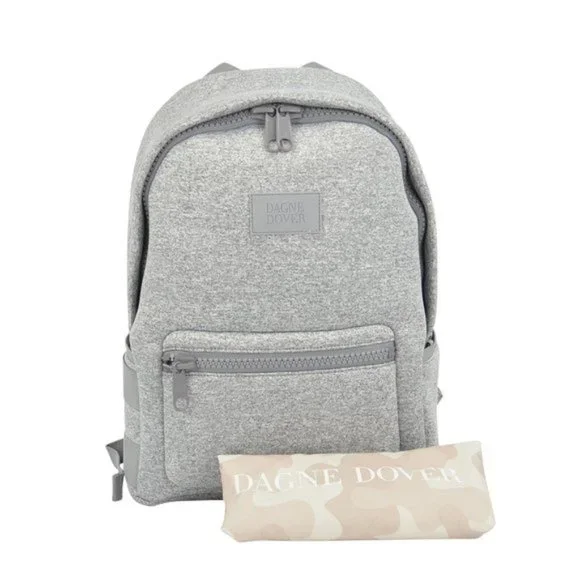 NEW Dagne Dover Medium DAKOTA Backpack Daypack Heather GreyMade of Nylon11.5” L x 5” W x 17” H3 1/2" neoprene handleZipper Closure2 zip pockets and one interior slotDetachable zip pouchColor-plated Zinc-Alloy HardwareIncludes removable Shoe Bag and Air Mesh Zip Top Pouch0_dd_bp_hgry3