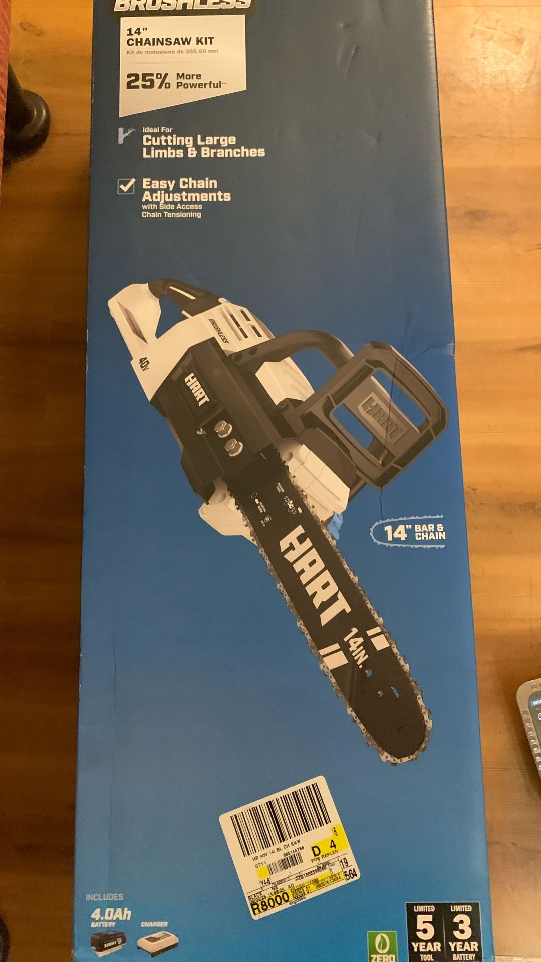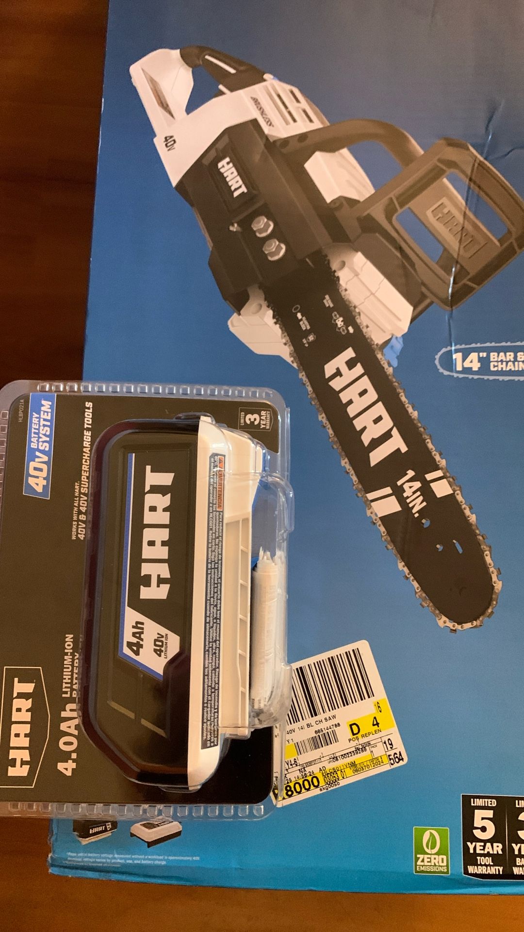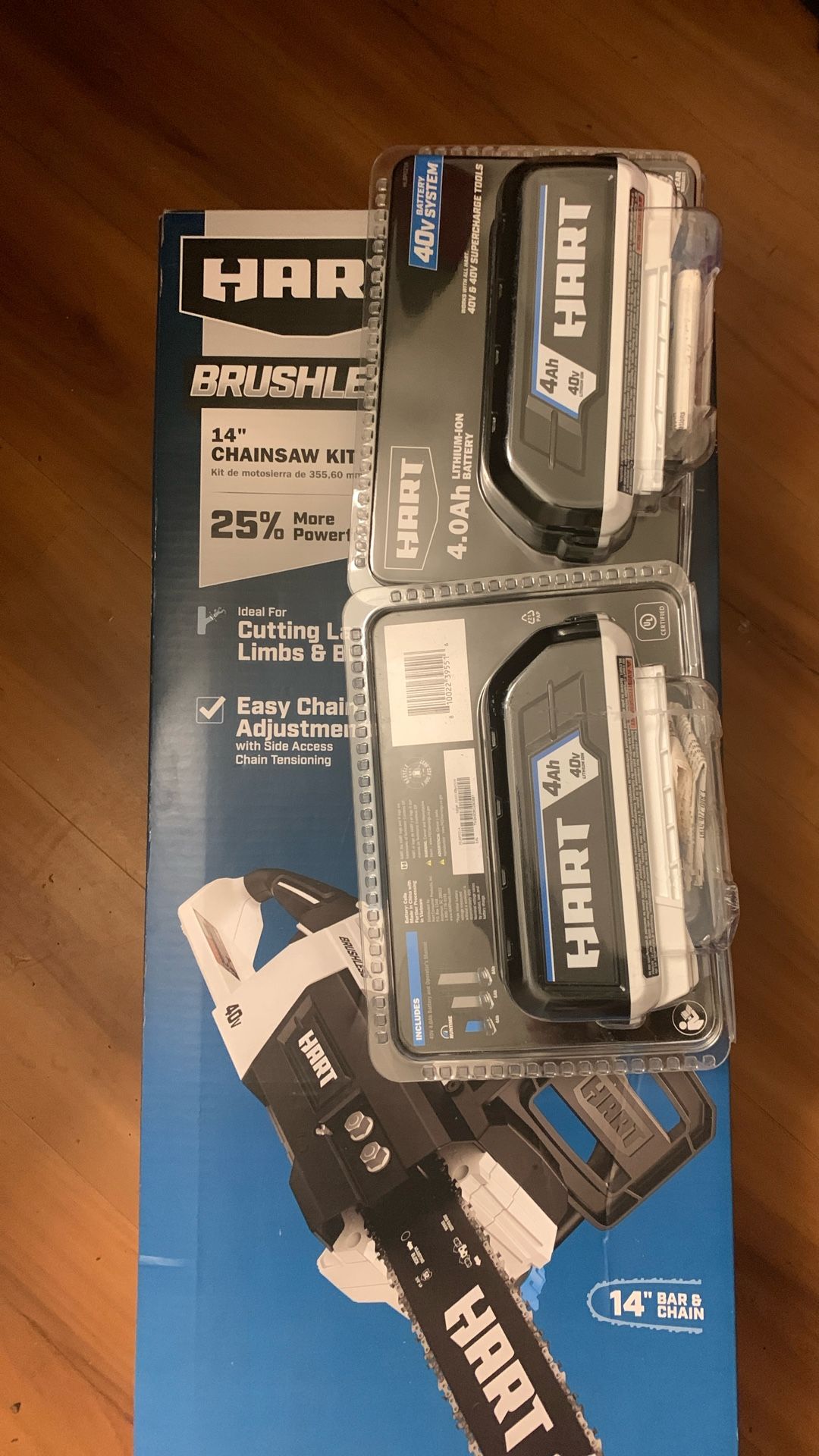 Hart brushless 14 inch chainsaw kit comes with battery and charger And 2 hart battery 40v 4.0ah separate from chainsaw All together 150