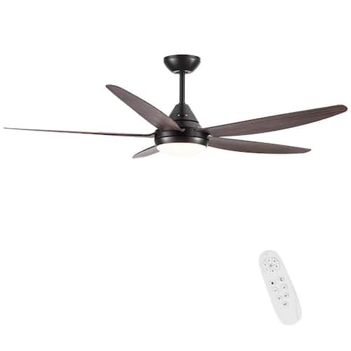 About This Product:This 56 in. Indoor Wooden Ceiling Fan with Light combines modern design, powerful performance, and energy efficiency. Featuring 5 high-quality ABS blades and a sleek matte black finish, it blends seamlessly with both traditional and modern interiors. Equipped with an ultra-efficient DC motor, this fan consumes 70% less energy than AC models while delivering 6-speed settings and reversible airflow for year-round comfort. The integrated 36-Watt LED light offers 3 color temperatures (3000K, 4000K, 5000K) to suit different lighting needs. A convenient remote control allows easy adjustment of fan speed, brightness, and timer settings (1H/3H/6H). Designed for quick installation and whisper-quiet operation, this ETL-certified ceiling fan is the perfect addition to bedrooms, living rooms, and dining areas.